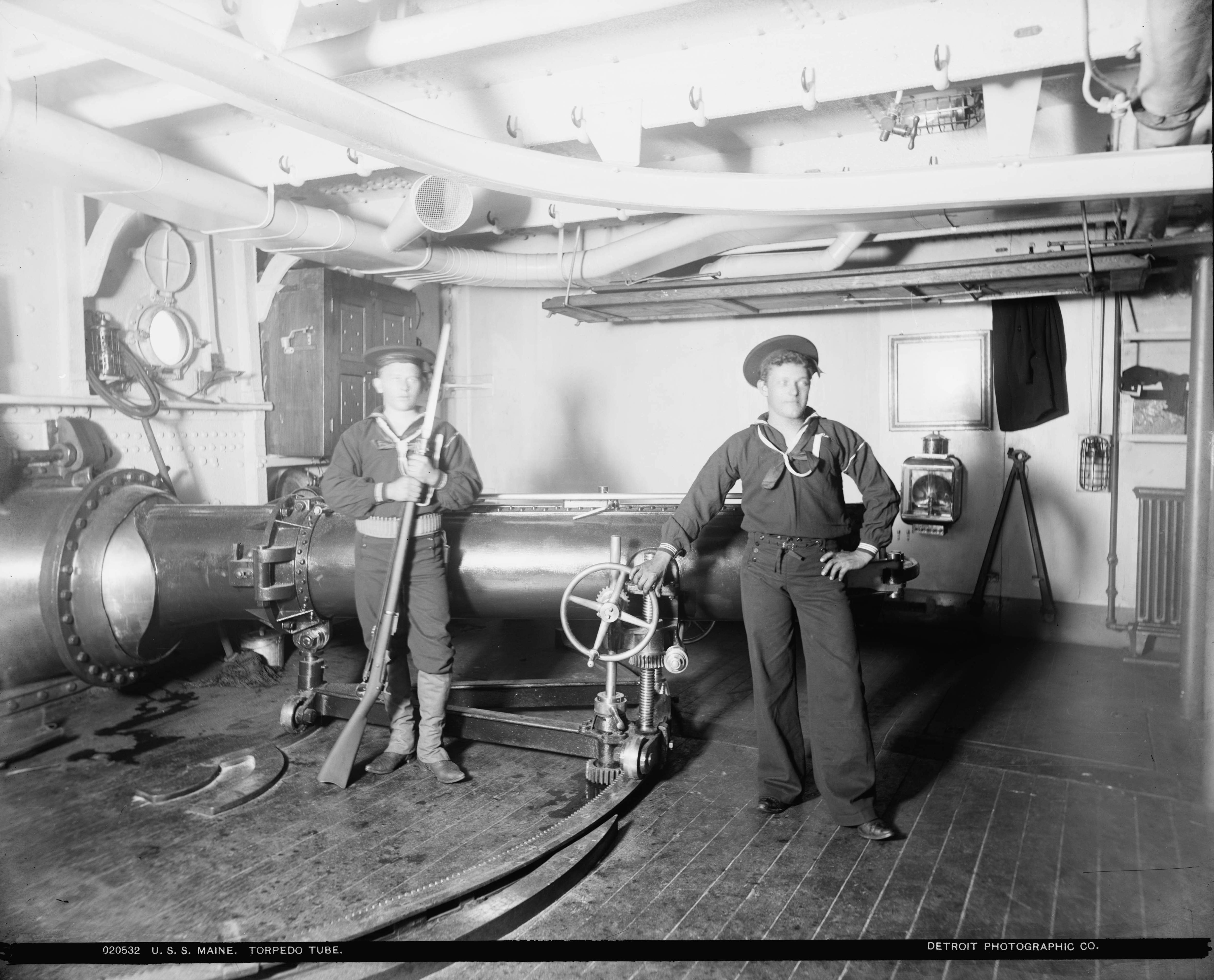 ![]() maine75a | 1.06k | Torpedo tube, 1896. | Photo from the Detroit Publishing Co, Edward H. Hart, photographer, via the Library of Congress. Reproduction Number: LC-DIG-det-4a14354. Photo courtesy of loc.gov. |