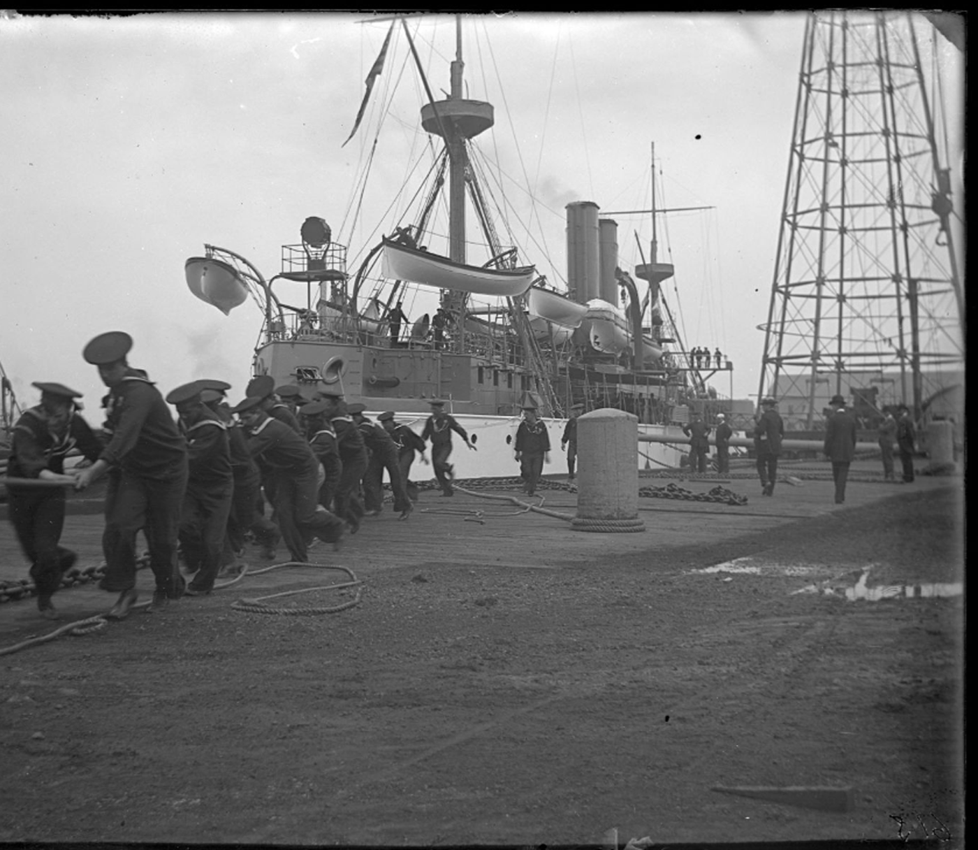 ![]() maine9 | 1.23k | Many muscle men move Maine to mooring at Brooklyn Navy Yard, New York City. | Photo courtesy of New York Historical Society via Daniel Hacker. | |