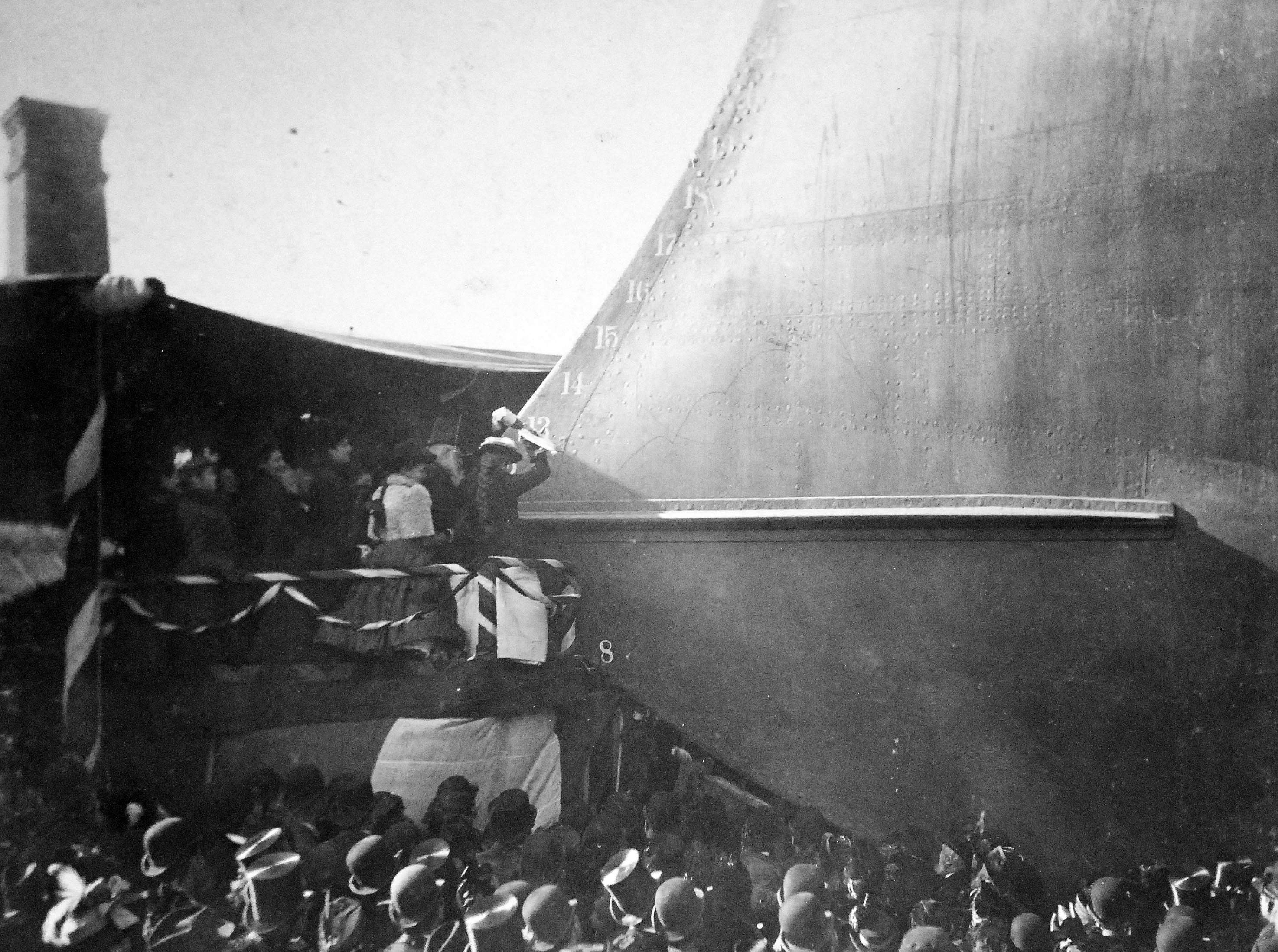 ![]() | 2.14k | The main event on the Maine occurs as Miss Alice Tracy Wilmerding, momentarily will strike the ship with bubbly on 18 November 1890. | Detroit Photographic Company. Courtesy of the Library of Congress. Photo # Lot 3000-S-15 from the National Museum of the U.S. Navy via flickr.com. | |