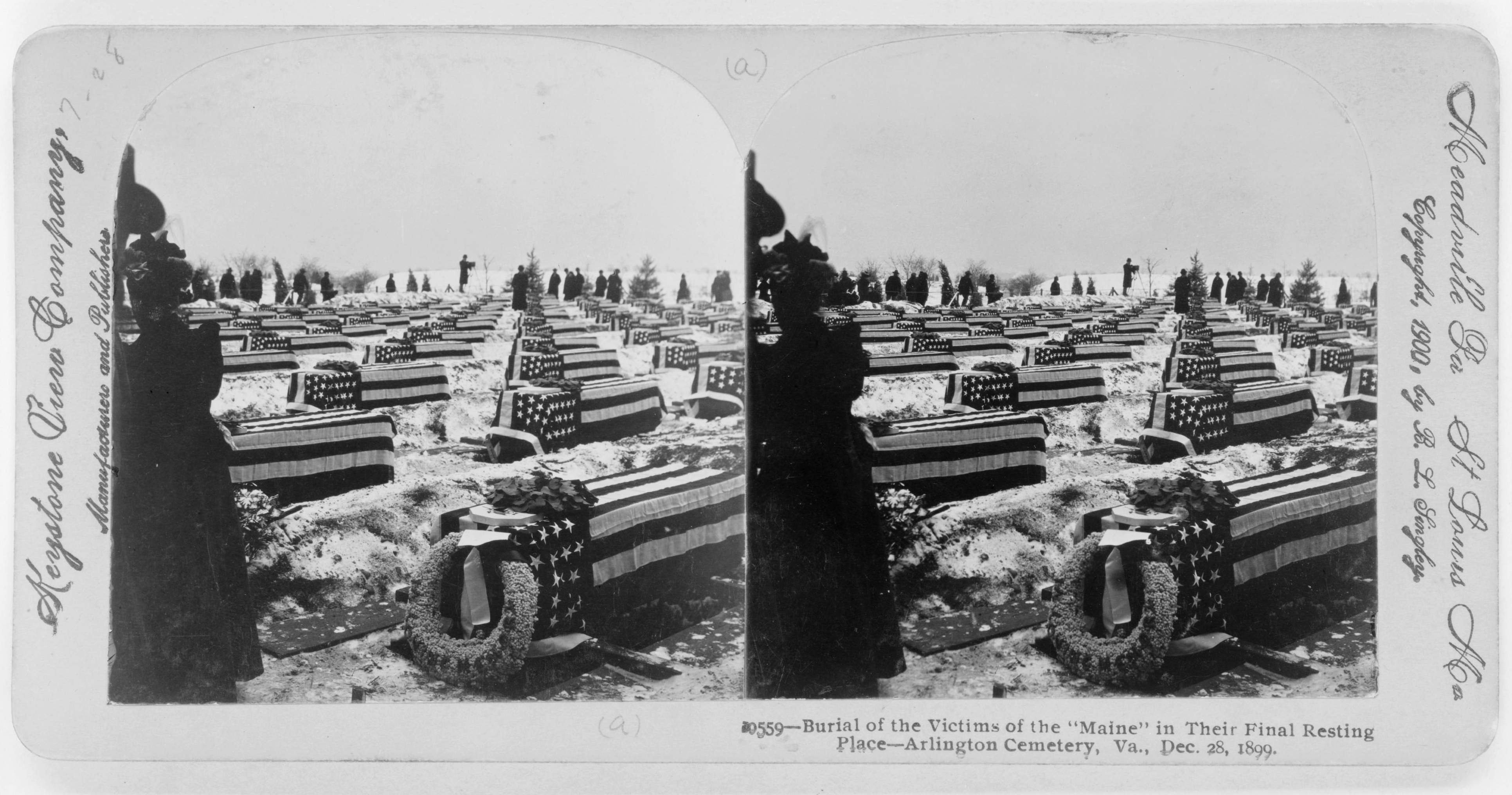 ![]() | 506k | Burial services of sailors recovered from the Maine, held at the south end of the State, War, and Navy Dept. Building, 23 March 1912. Washington D.C. | NARA FILE #: 042-M-G-42. Photo HD-SN-99-01965, from the Department of Defense Still Media Collection, courtesy of dodmedia.osd.mil. | |