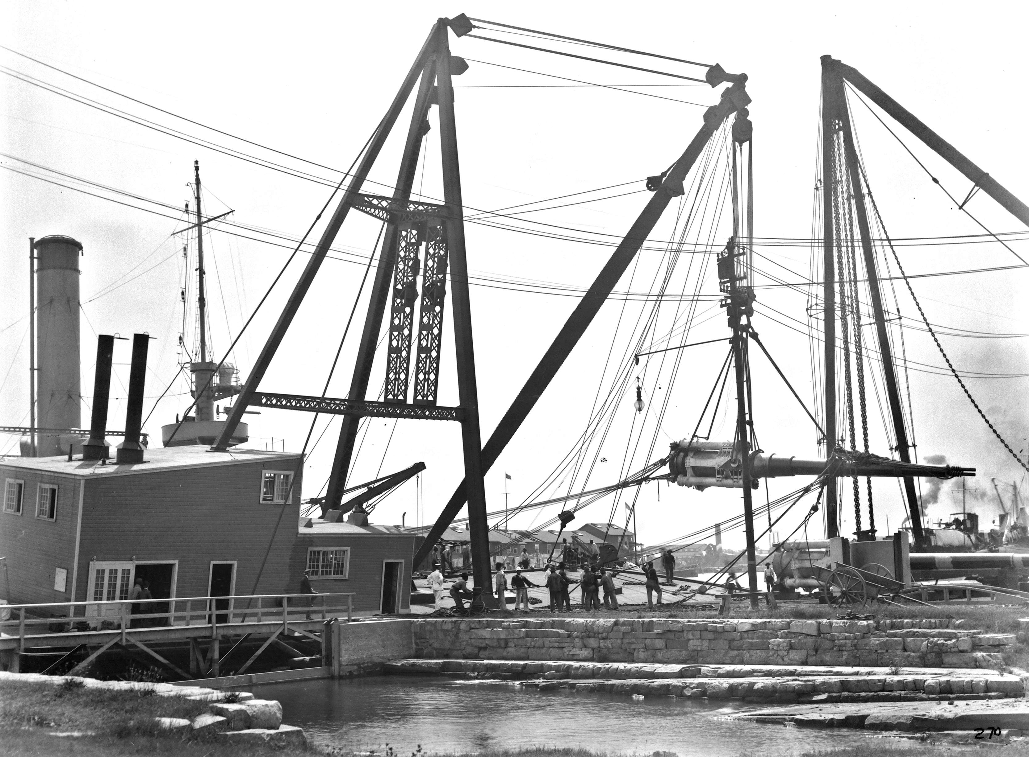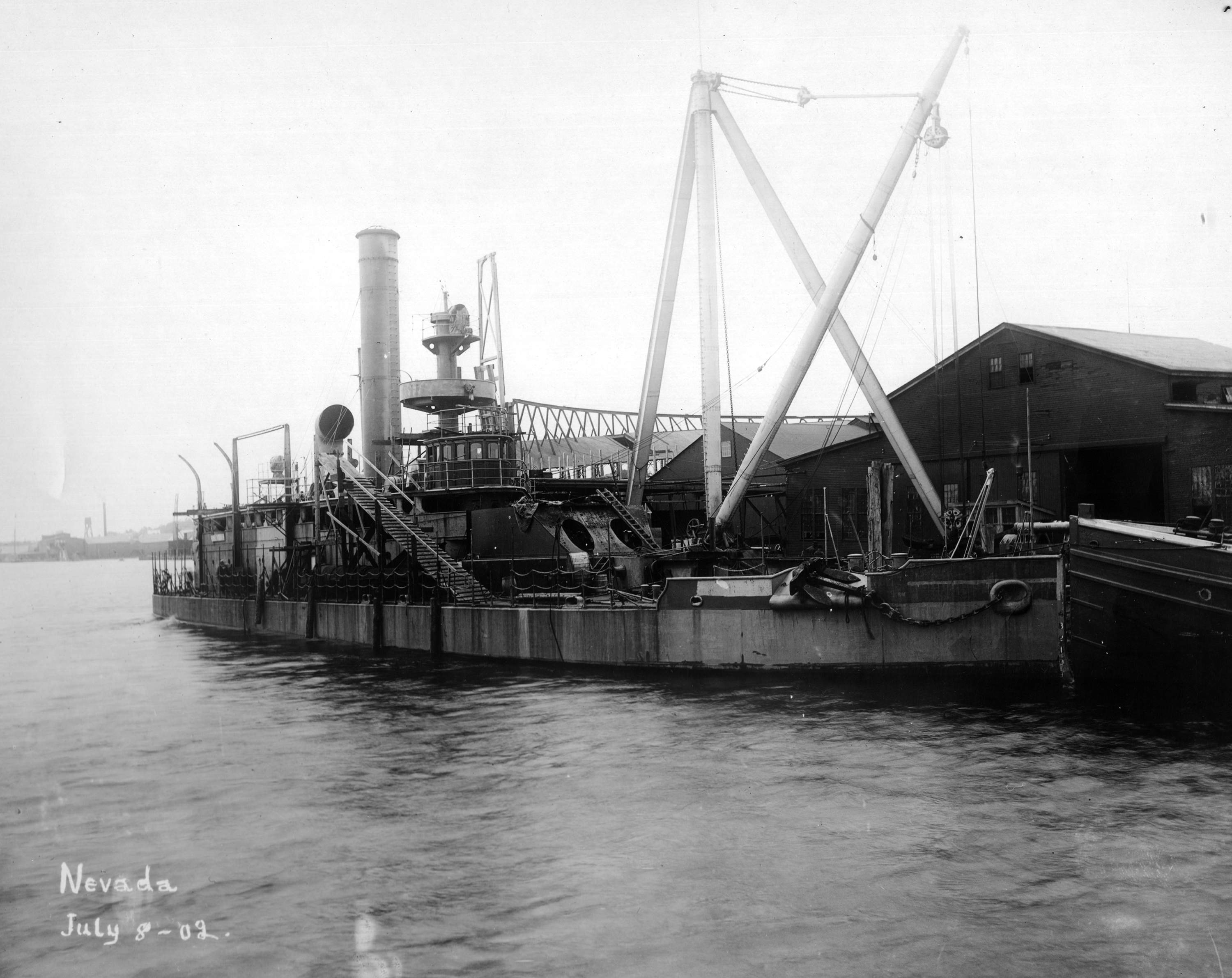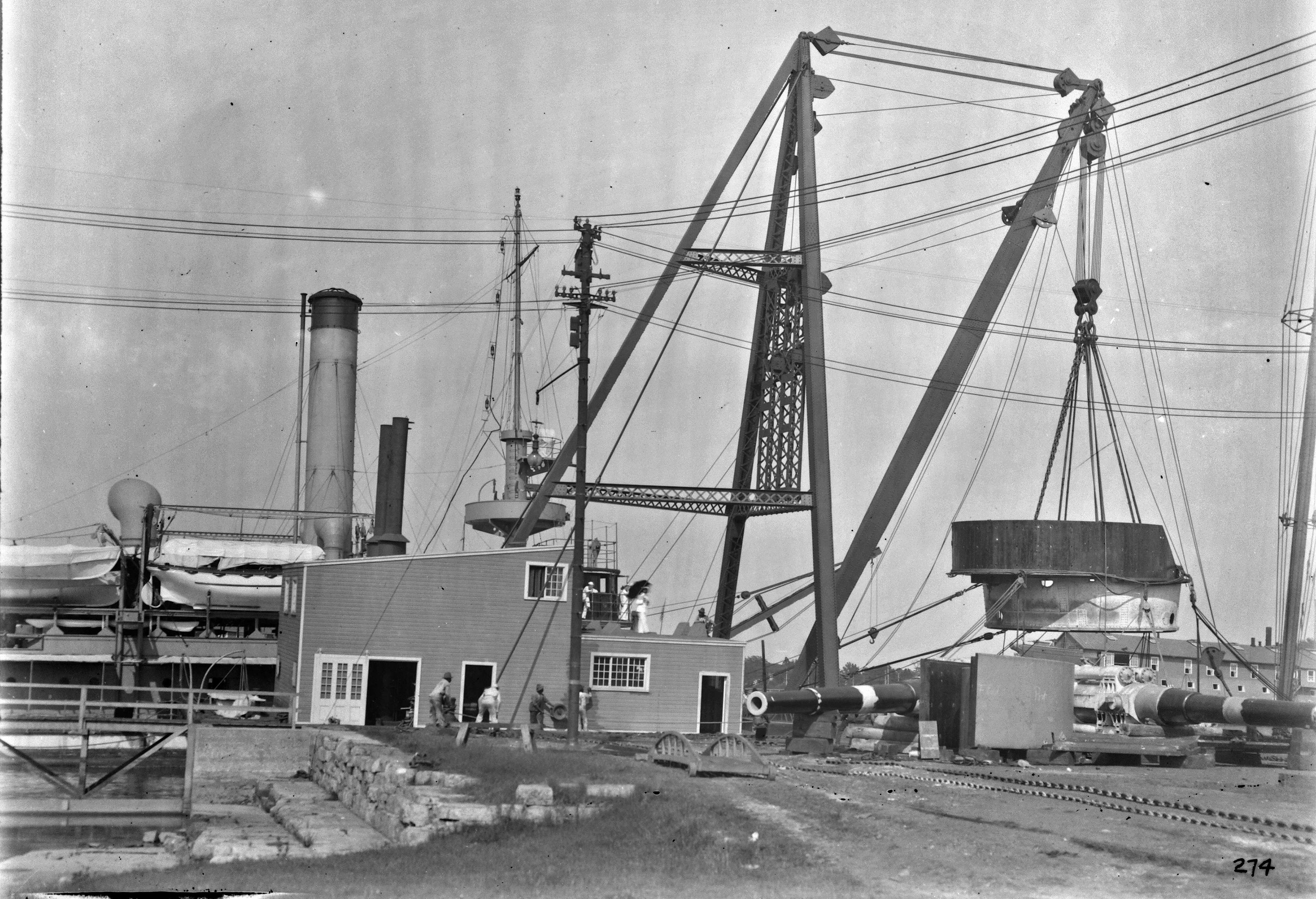 ![]() | 790k | 120-ton Derrick with Gun of Nevada (M-8) at the Norfolk Naval Shipyard, 8 July 1903. | National Archives Identifier:52555659 Local Identifier: 181-V-0270 Photo courtesy of catalog.archives.gov |