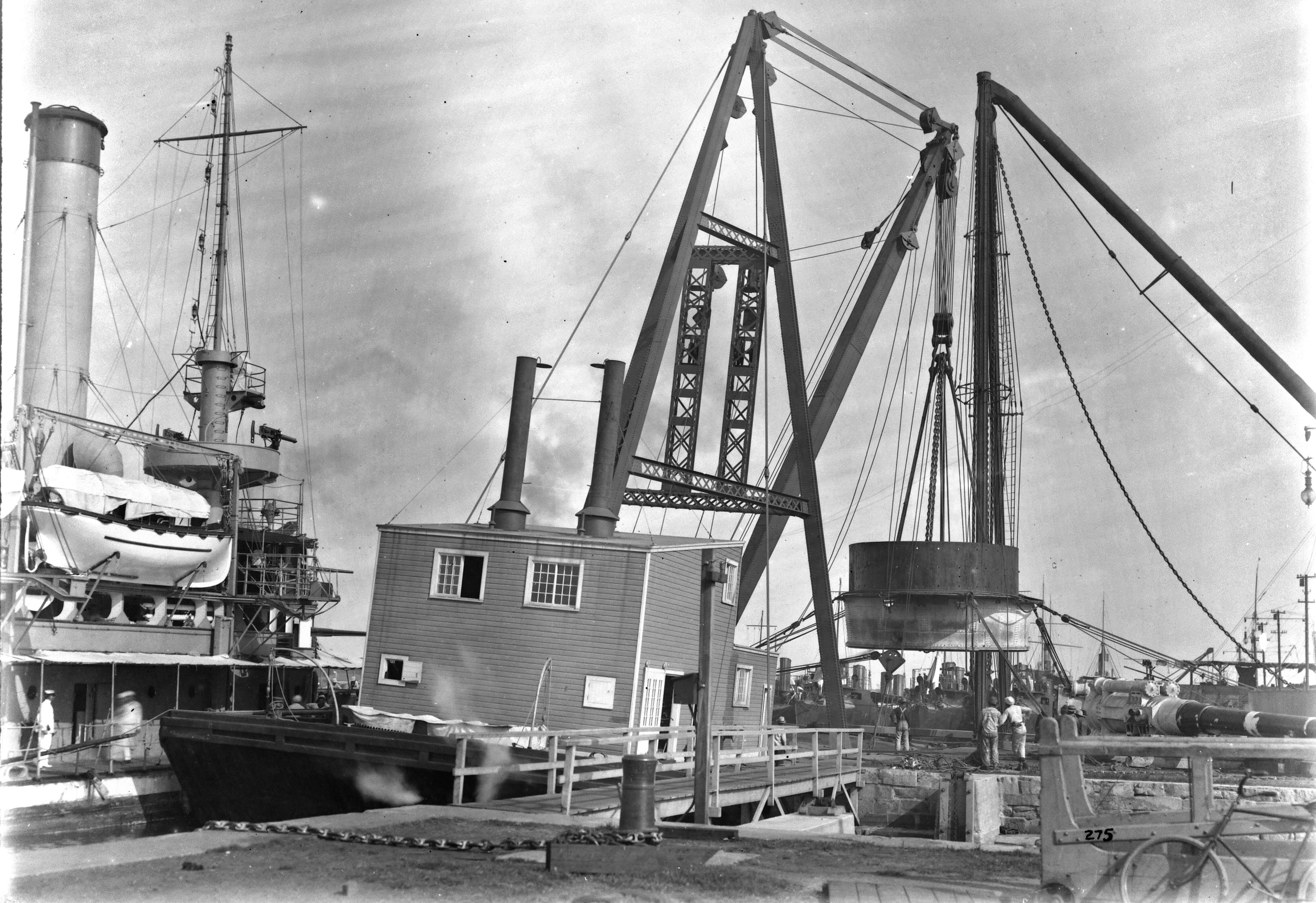 ![]() | 1.35k | 120-ton Derrick with Turret of Nevada (M-8) at the Norfolk Naval Shipyard, 8 July 1903. | National Archives Identifier:52555667 Local Identifier: 181-V-0274 Photo courtesy of catalog.archives.gov |