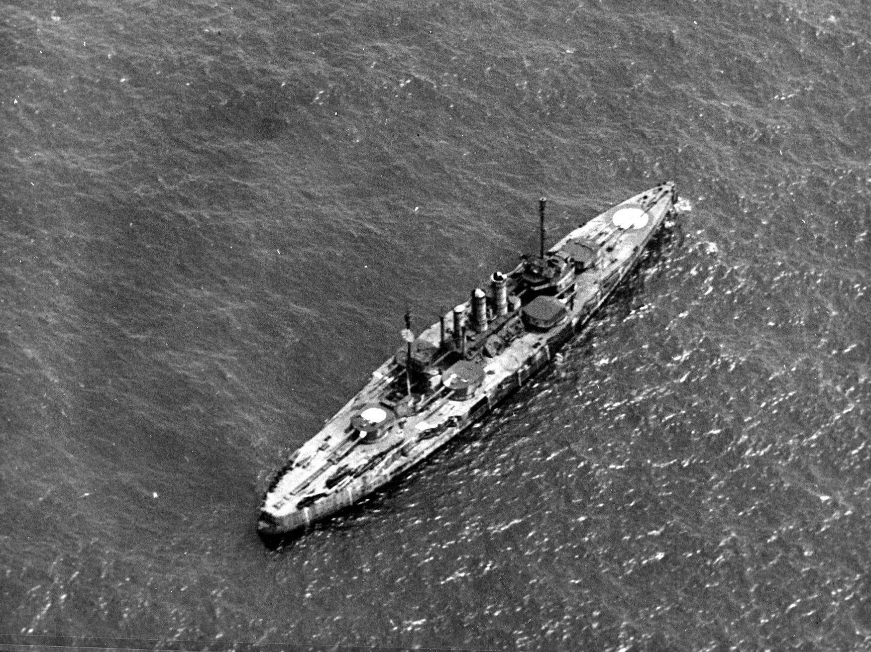 841k | The German Battleship Ostfriesland at anchor off Virginia Capes on 20 July 1921. This is prior to the ship being attacked by Army Air Service bombers in evaluation of aerial ship bombardment. Note the targets visible on the ship. | US Navy and Marine Corps Museum/Naval Aviation Museum, Photo No. 1987.096.004.018 via Mike Green. | |