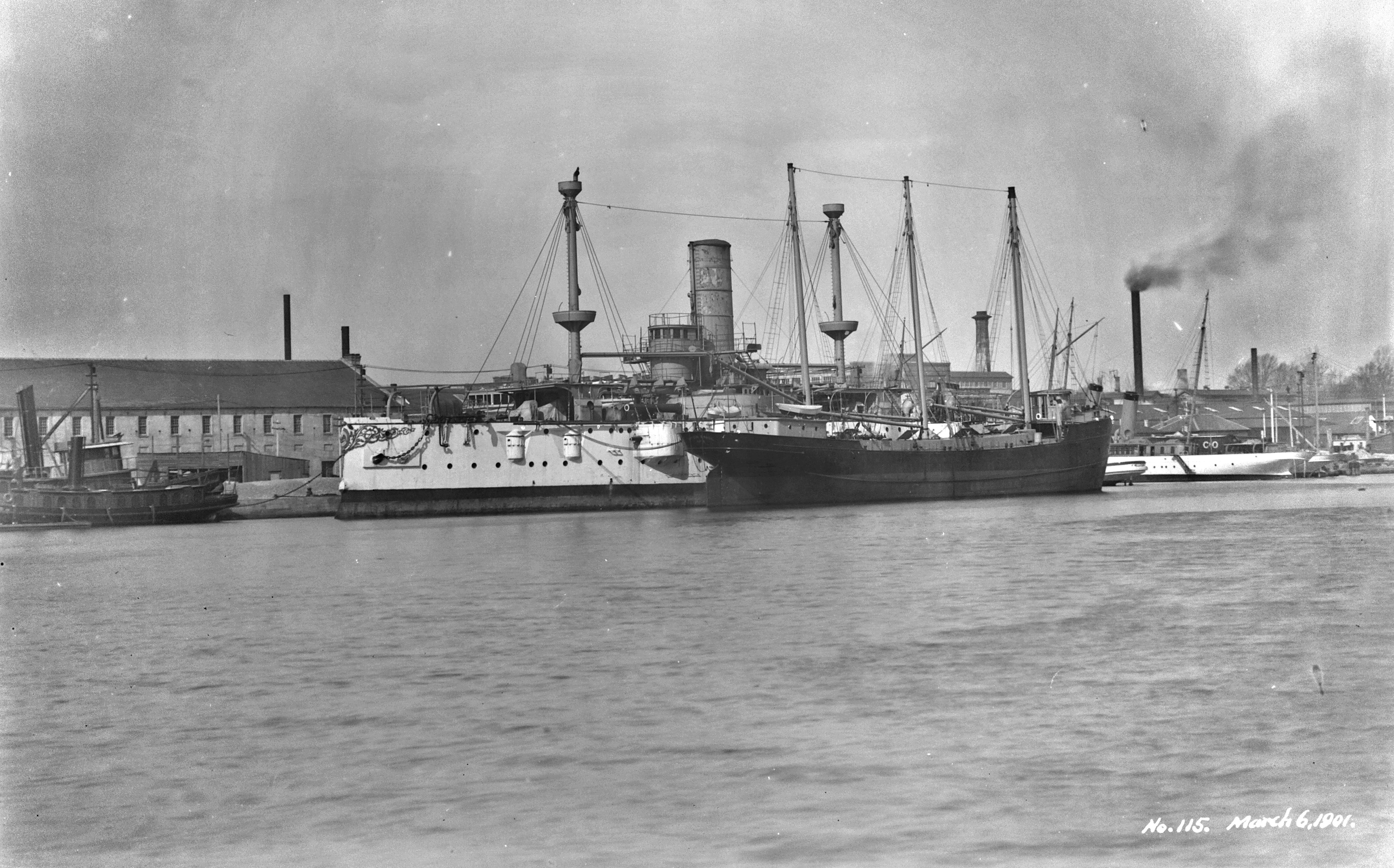 1.02k | The southern part of Texas is viewed here at the Brooklyn Navy Yard, beside her is the Kearsarge (BB-5). Photo shows on the left, with 4 stacks, the protected cruiser Columbia. | Detroit Publishing Company Photo by Edward H. Hart. Photo LC-DIG-det-4a15443 courtesy of loc.gov. | ||||||||||||||||||||||||||||||||||||||||||||||||||||||||||||||||||||||||||||||||||||||||||||||||||||||||||||||||||||