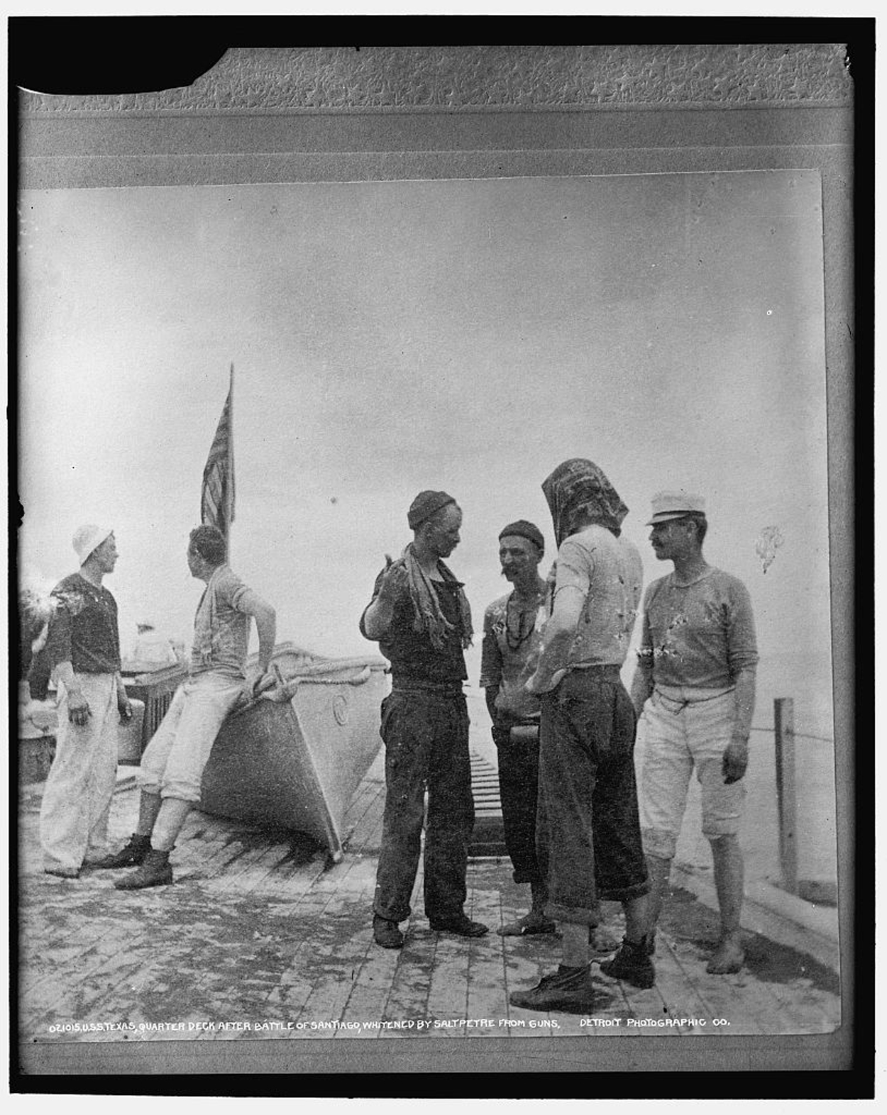 ![]() | 900k | Texas quarter deck after Battle of Santiago, whitened by saltpetre [i.e. saltpeter] from guns. | Photo by Edward Hart, Detroit Publishing Company Photo by Edward H. Hart, # 4a14776v from lcweb2.loc.gov. | ||||||||||||||||||||||||||||||||||||||||||||||||||||||||||||||||||||||||||||||||||||||||||||||||||||||||||||||||||||