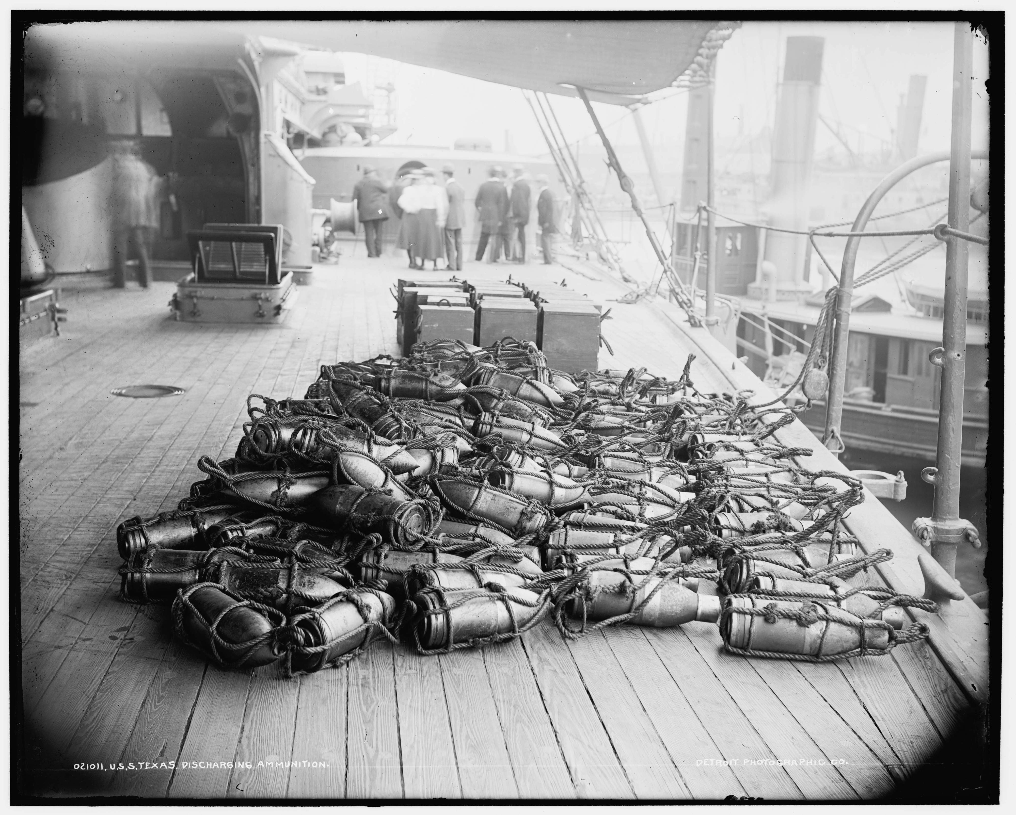 1.64k | Texas discharging ammunition, between 1895 and 1901. Note the ladies on board. |