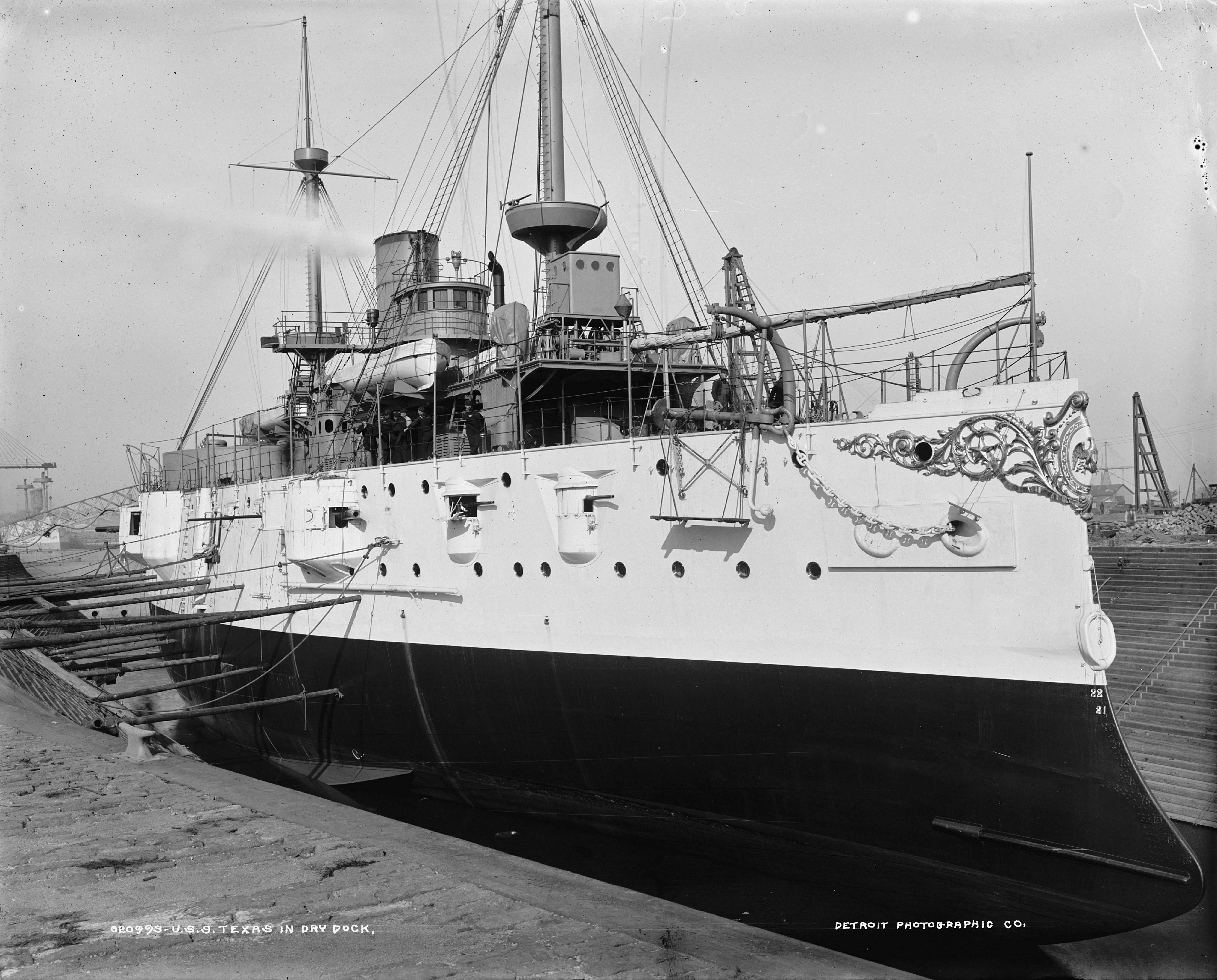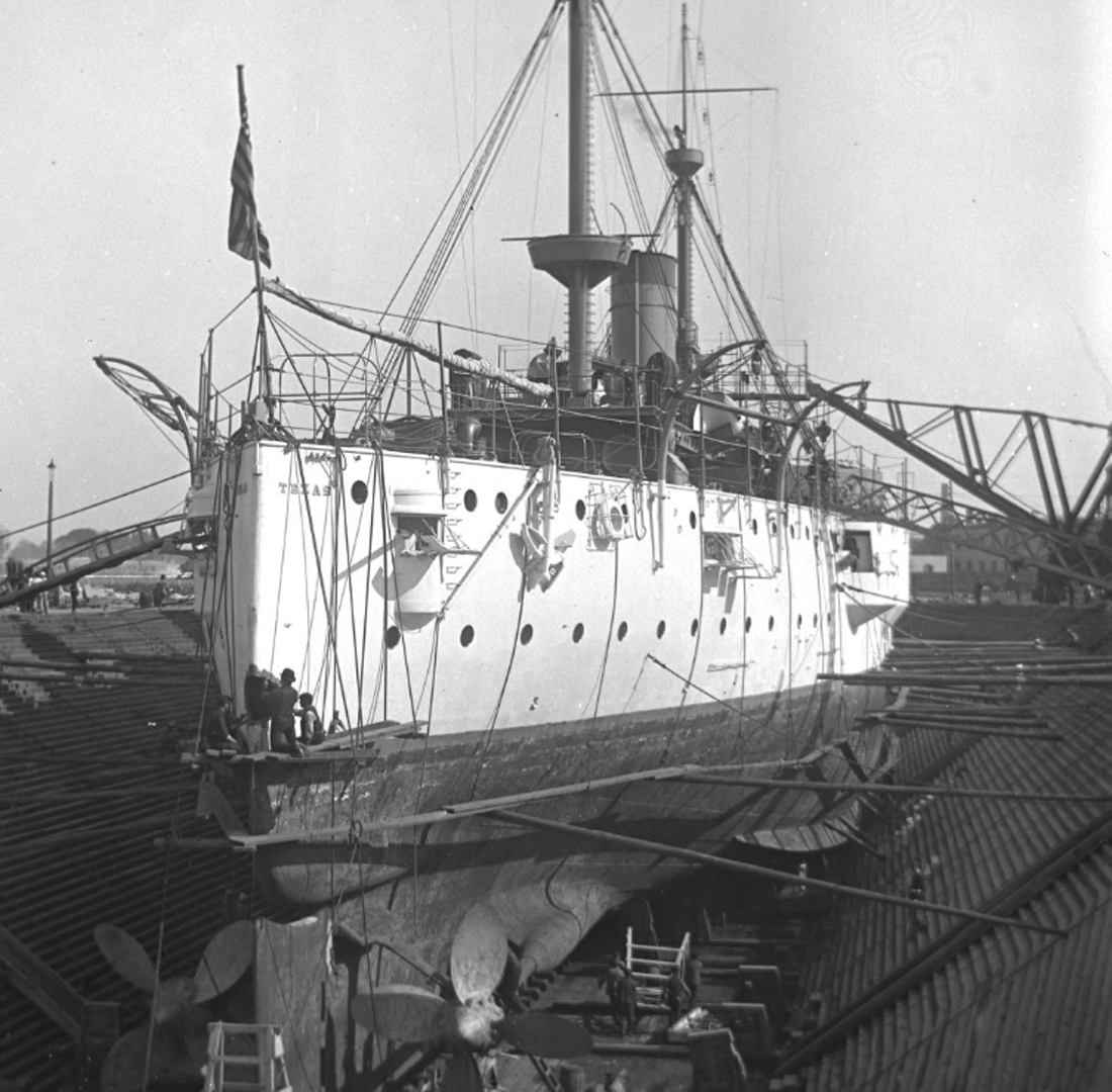 2.45k | Texas in dry dock, between 1895 and 1901. | Detroit Publishing Company Photo by Edward H. Hart. Photo LC-DIG-det-4a14756 courtesy of loc.gov. | ||||||||||||||||||||||||||||||||||||||||||||||||||||||||||||||||||||||||||||||||||||||||||||||||||||||||||||||||||||