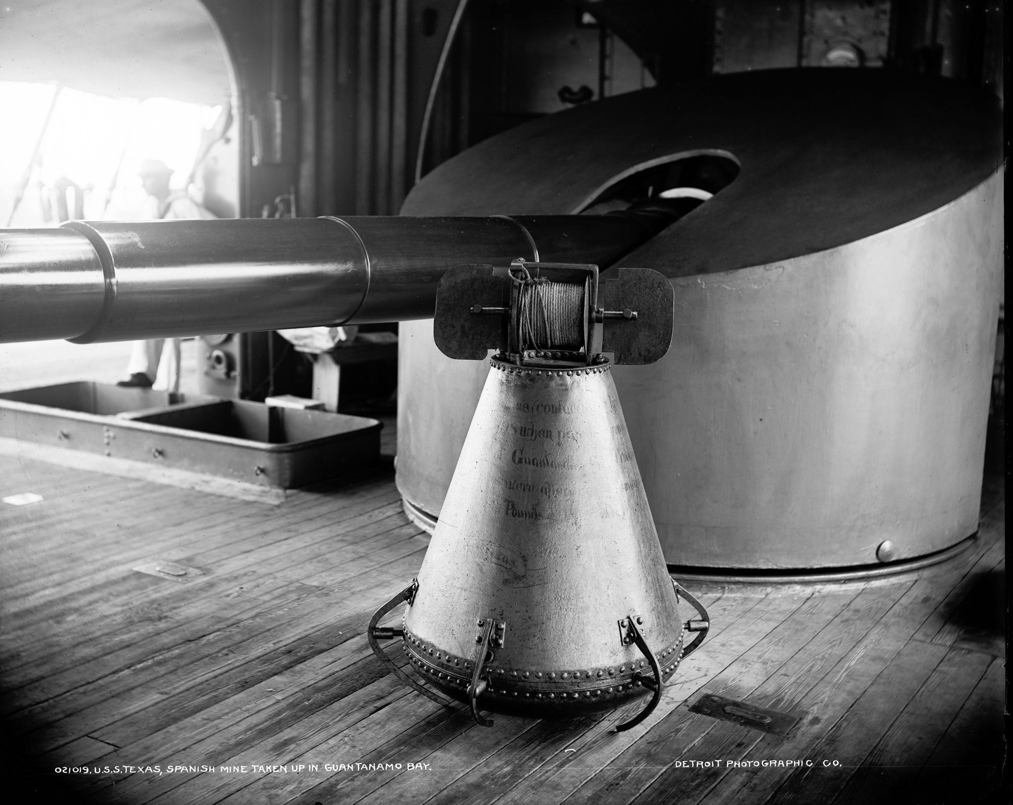 ![]() | 770k | A Spanish mine that was taken up in Guantanamo Bay, Cuba, is shown on the deck of US Navy battleship Texas. | USN photo #Photo LC-DIG-DET-4A14780 by Edward H. Hart and published by the Detroit Publishing Company. Photographed between 1898-1901, courtesy of the Library of Congress, from the National Museum of the U.S. Navy, courtesy of flickr.com. | ||||||||||||||||||||||||||||||||||||||||||||||||||||||||||||||||||||||||||||||||||||||||||||||||||||||||||||||||||||