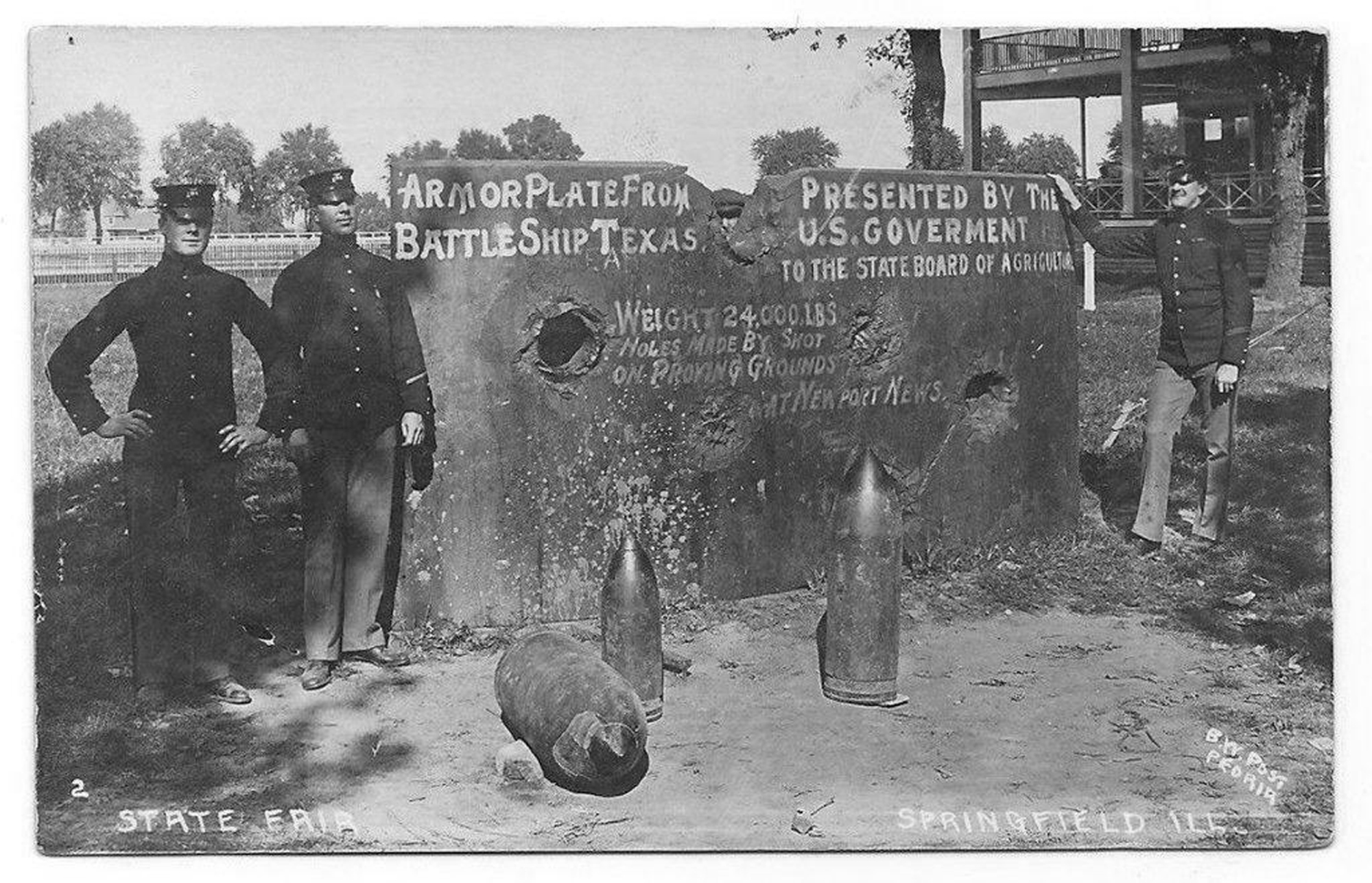 Armor plate from the Texas at the Illinois state fair in Springfield, circa 1915. |