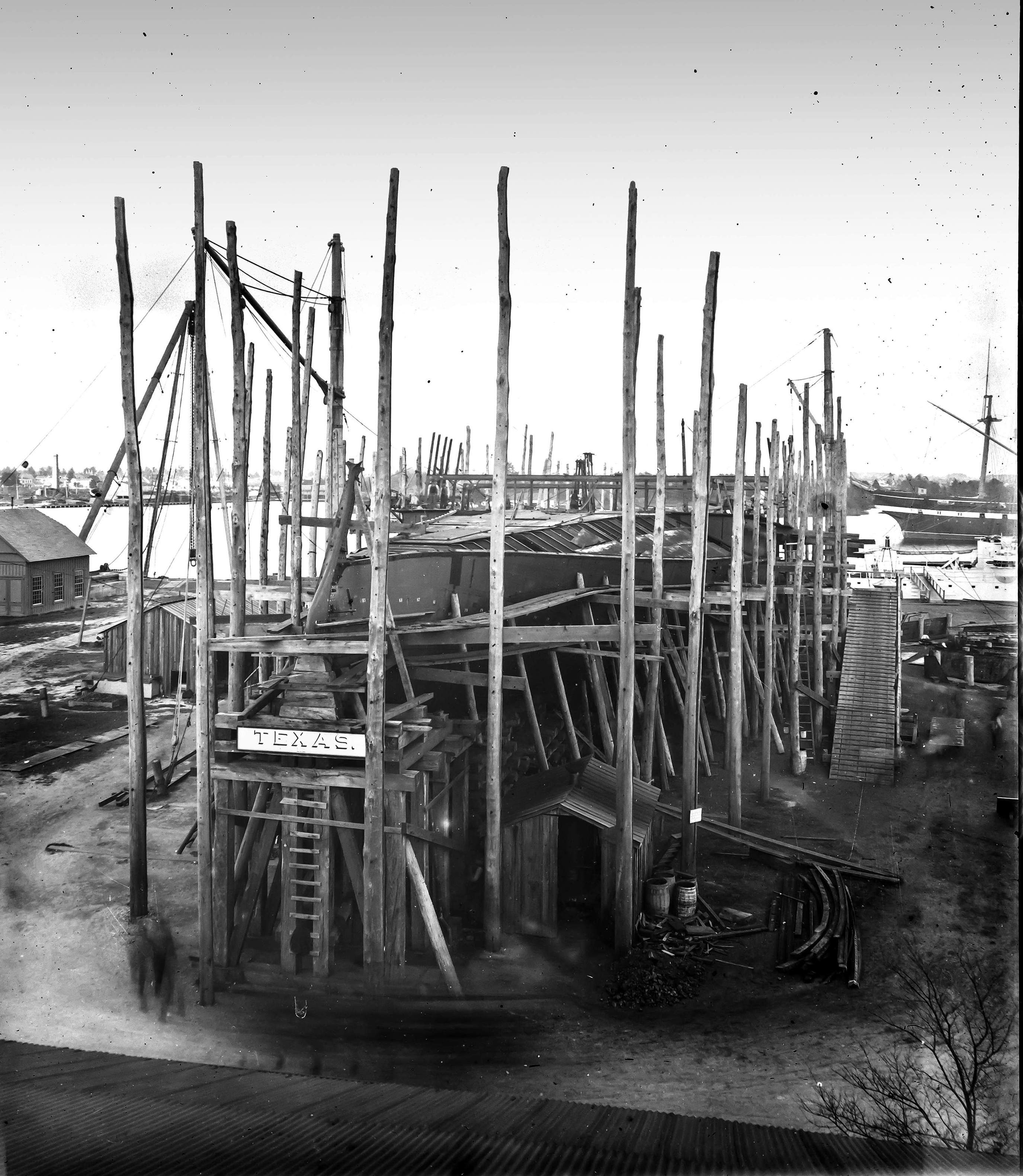 1.51k | Stern of the Texas, possibly right before launching on 28 January 1892. | National Archives Identifier: 52560707 Local Identifier: 181-V-7019 Photo courtesy of catalog.archives.gov |