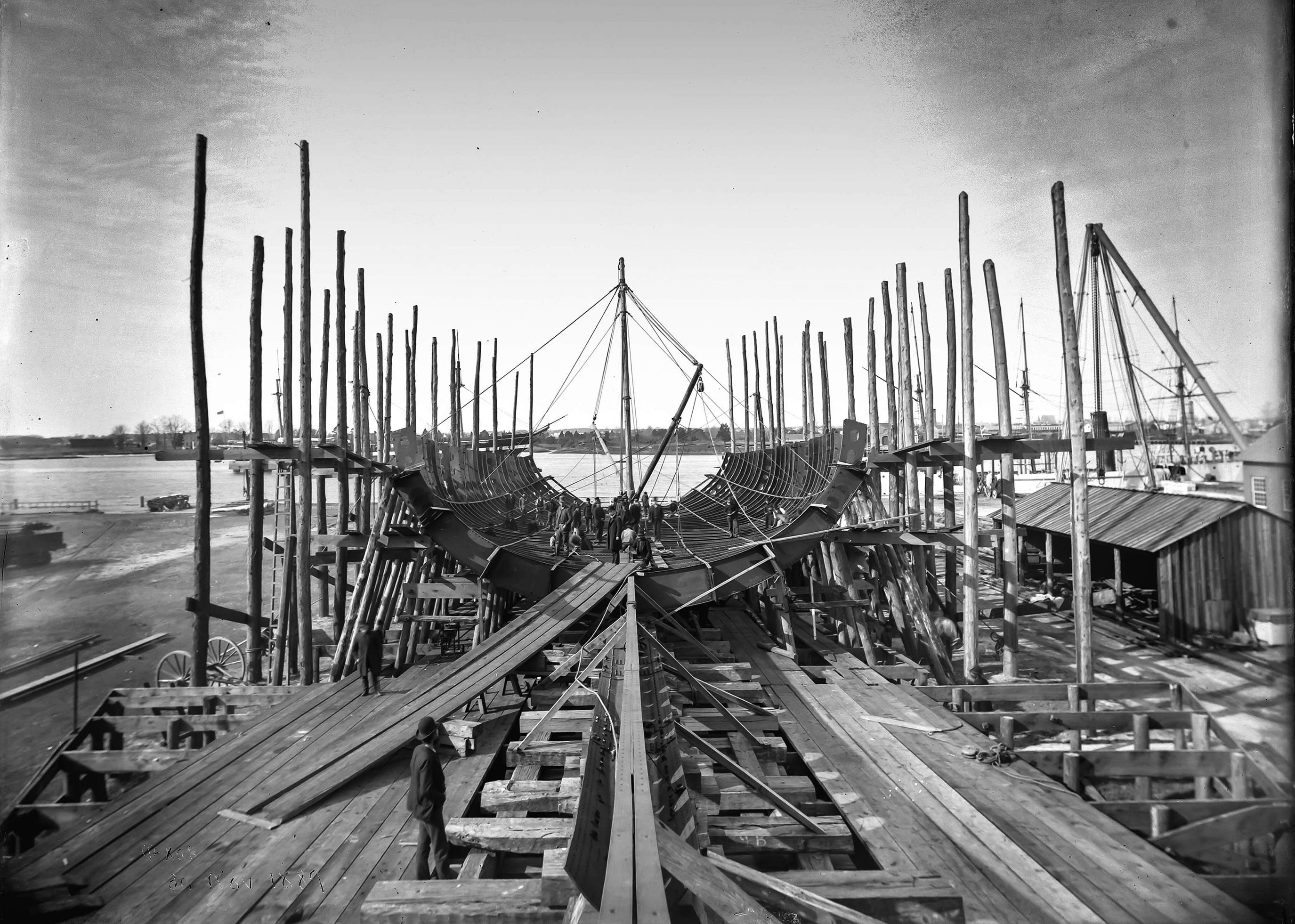 611k | U.S. Navy yard, Norfolk, Va., Texas on the ways under construction, 30 November 1889. | National Archives Identifier: 52560643 Local Identifier: 181-V-6987 Photo courtesy of catalog.archives.gov |