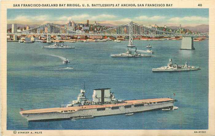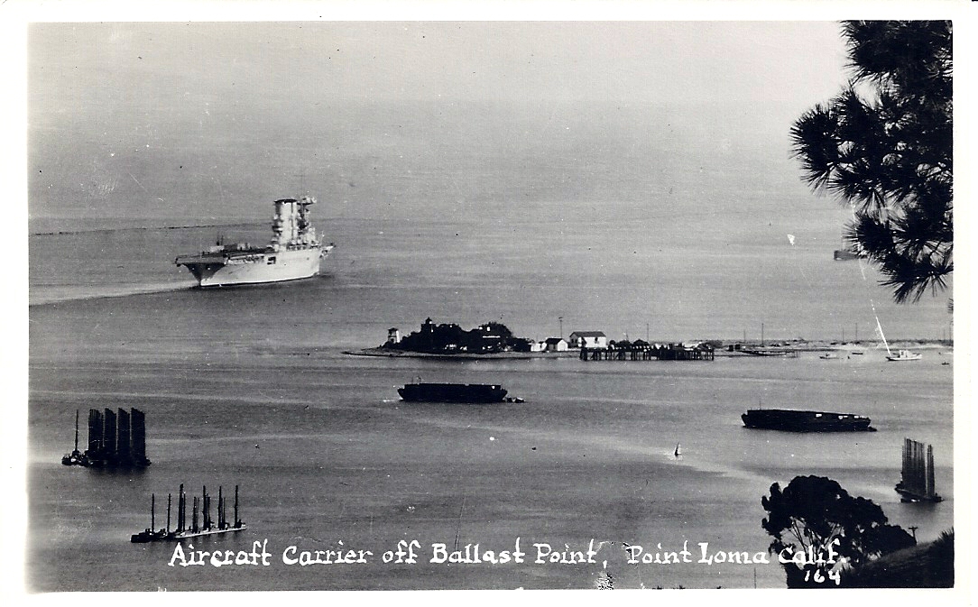 550k | "The U.S.S. Saratoga, airplane carrier, at anchor in the harbor, San Diego, California." Undated postcard. |