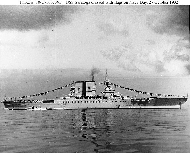 35k | USS Saratoga (CV-3) at anchor in the late 1920s. |