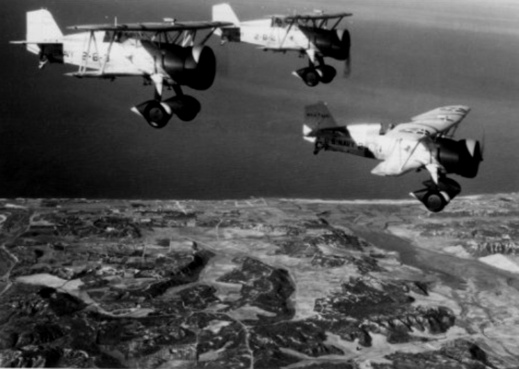 3.15M | "LATEST OFFICIAL PICTURES OF OUR NAVY IN ACTION" "America's First Line of Defense As Streamlined As It Is Alert" "Navy pilots can hold position in formation flying with wings almost touching wings. Each plane, in 'tight' formations, is a protection to its neighbors. These planes are Vought-Sikorsky dive bombers from the Saratoga." Detroit Sunday Times Pictorial Review, Sunday, 10 August 1941. |