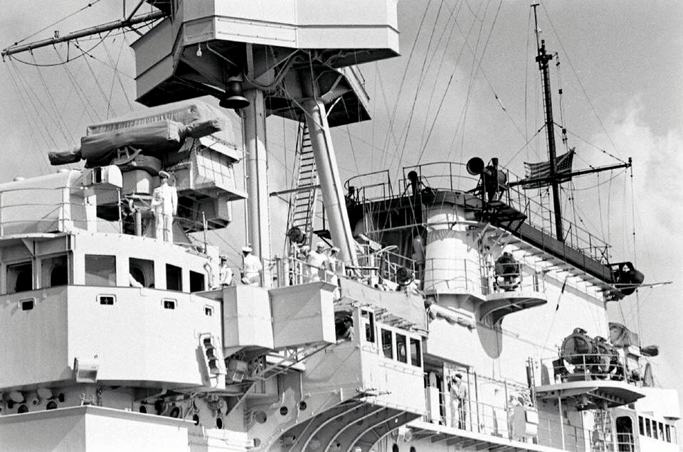 146k | Closeup of the bridge, superstructure and stack of USS Enterprise (CV-6), during U.S. Aircraft Carrier Operations off of Hawaii in April 1940 for Fleet Problem XXI. LIFE magazine photo by Carl Mydans, shared by Peter DeForest. |