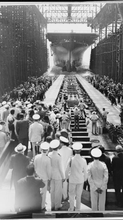 91k | Essex just after launch, July 31st, 1942 at Newport News Shipbuilding. |