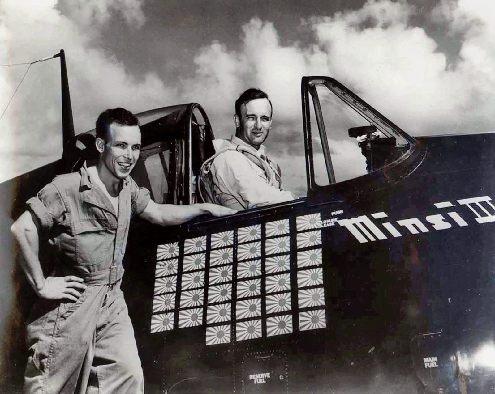 110k | "Captain Hugh N. Batten was born in Huntington, West Virginia on October 17, 1923. He entered the Naval Aviation Cadet program in 1942 and received his wings and commission in December 1943. Batten checked out in F4F Wildcats and F6F Hellcats and in December 1944 joined Fighting Squadron 83 (VF-83) which would go aboard the USS Essex in early 1945, as a part of the famed Carrier Task Force 58." "Batten flew his first combat mission on March 19, 1945 and as the formation passed over Kure Naval Base 25 to 30 enemy fighters were sighted. Batten and his wingman, Lt. (j.g.) Samuel Brocato, tied into a formation of Jack fighters and using mutual support tactics managed to down two of them apiece. His next action came on April 6, 1945 off Okinawa. While on defensive patrol, Batten and his wingman got into a formation of Zekes headed for the fleet. Using the tactics that had proven so successful previously, he and his wingman Brocato each downed four of the enemy fighters earning a Navy Cross for both pilots. Final combat came for Batten and Brocato on July 28th when they teamed to destroy two Tonys over an airfield in central Kyushu, Japan." "Hugh Nash Batten was buried at the Arlington National Cemetery, section 64, site 767." Navy Cross Citation reads: "The President of the United States of America takes pleasure in presenting the Navy Cross to Lieutenant, Junior Grade Hugh Nash Batten (NSN: 0-326456), United States Naval Reserve, for extraordinary heroism in operations against the enemy while serving as Pilot of a carrier-based Navy Fighter Plane in Fighting Squadron EIGHTY-THREE (VF-83), attached to the U.S.S. ESSEX (CV-9), in action against the enemy on Combat Air Patrol over our Task Force operating in the vicinity of Okinawa on 6 April 1945. During this flight Lieutenant, Junior Grade, Batten initiated an attack against nine enemy fighters and shot down four of them. His courage and skill in pressing home an attack against forces greatly superior in number was at all times in keeping with the highest traditions of the United States Naval Service." |