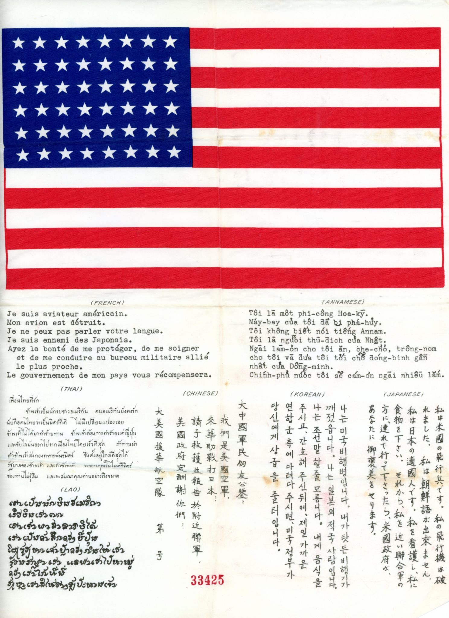 375k | Multi-language "I am an American aviator" pamphlet, to be used in Southeast Asia. "I am an American aviator. |