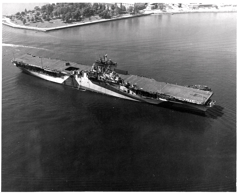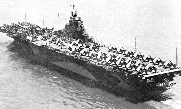 193k | Ticonderoga with a full deck load of planes. Possibly taken off Hampton Roads, Va., 26 June 1944 (see below). Notice channel buoy off her starboard bow. | USN | |||||||||||||||||||||||||||||||||