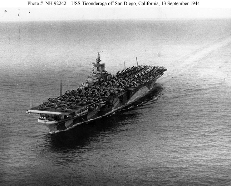 50k | War time image with deck load of aircraft. Ticonderoga was camouflaged in Measure 33, Design 10A from commissioning until early 1945. | USN | |||||||||||||||||||||||||||||||||