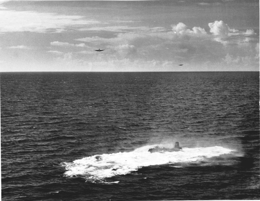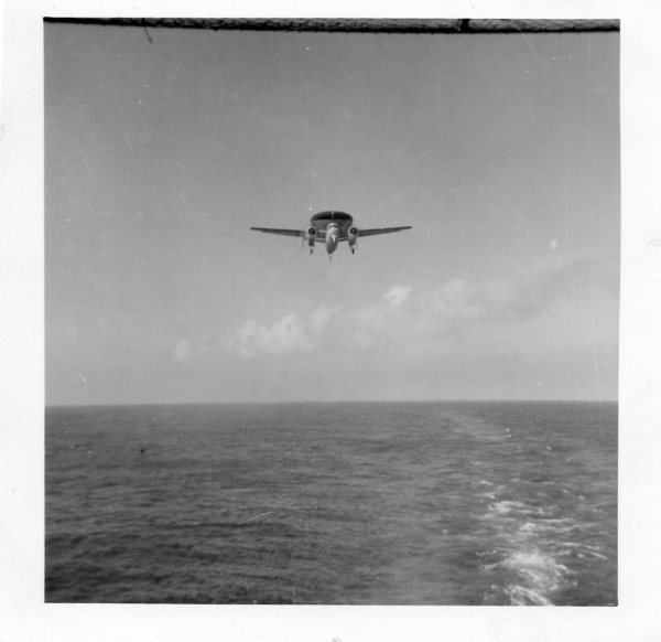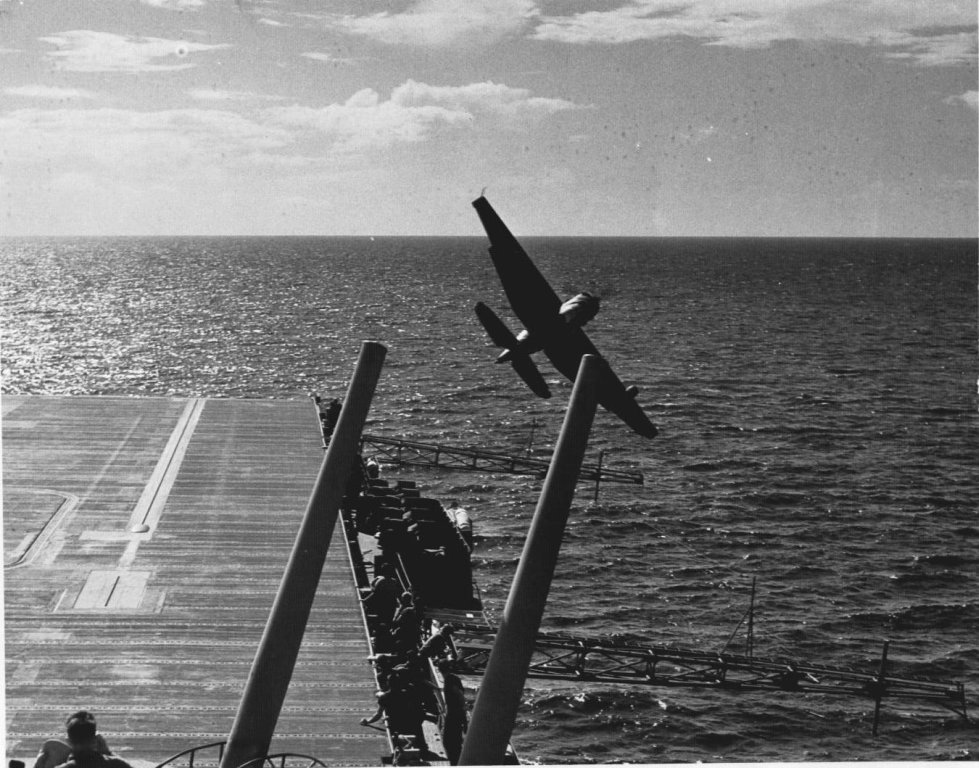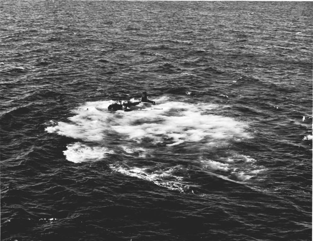 174k | Wednesday, 4 July 1944, "0847: TBF 13 [TBM-1C Avenger] upon being launched, crashed into the water off the starboard bow and clear of the ship, at latitude 10°27'13"N, longitude 62°03'05"W. Bureau plane 45922, piloted by Lt. (jg) G. C. Francom, USNR. Others in plane: Lt. R. W. Evans, USNR, and Stringer, E. N., ARM2c, 7CO-97-24, USNR. All members picked up by crash boat." (Excerpt from the ship's Deck Log.) |
