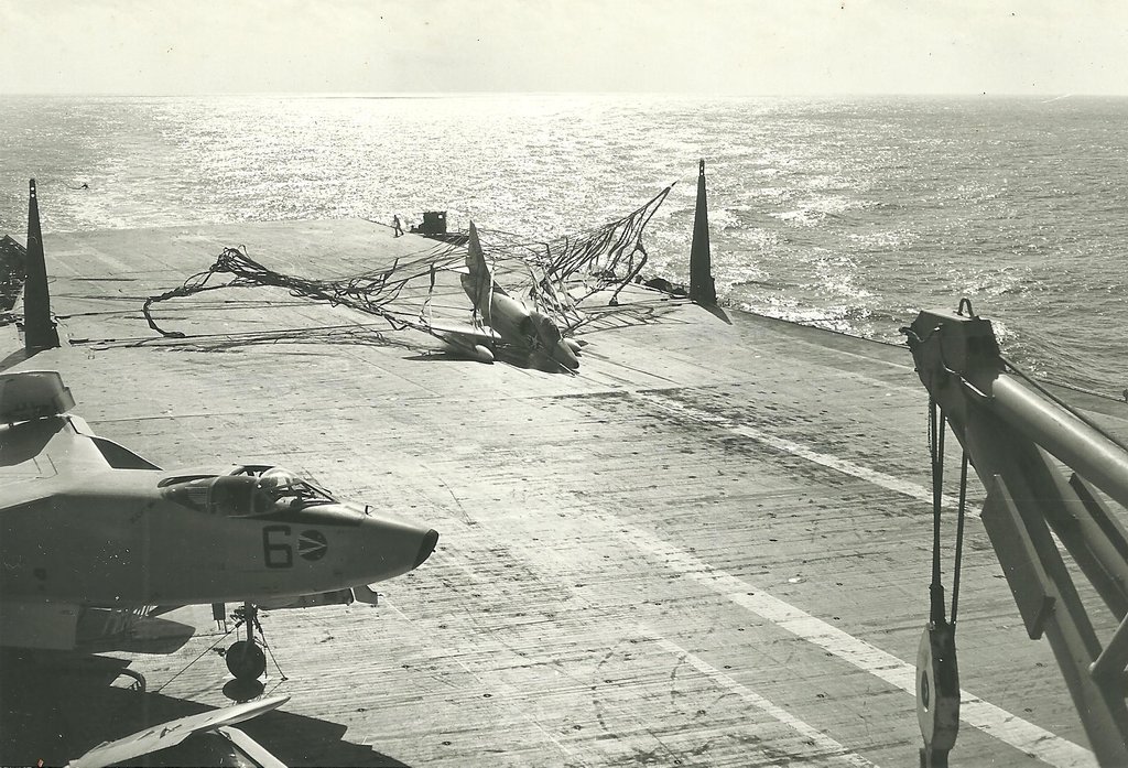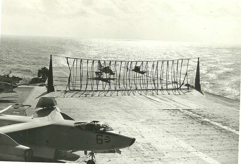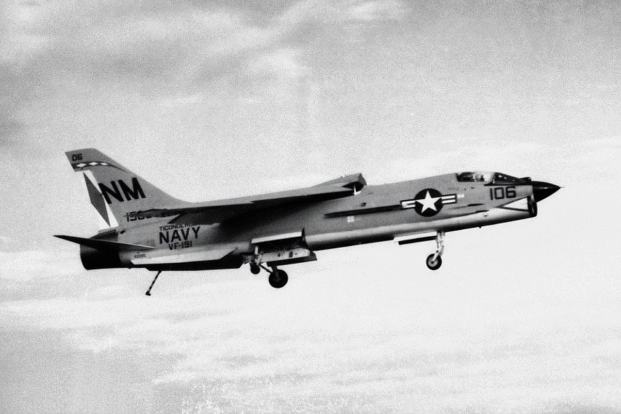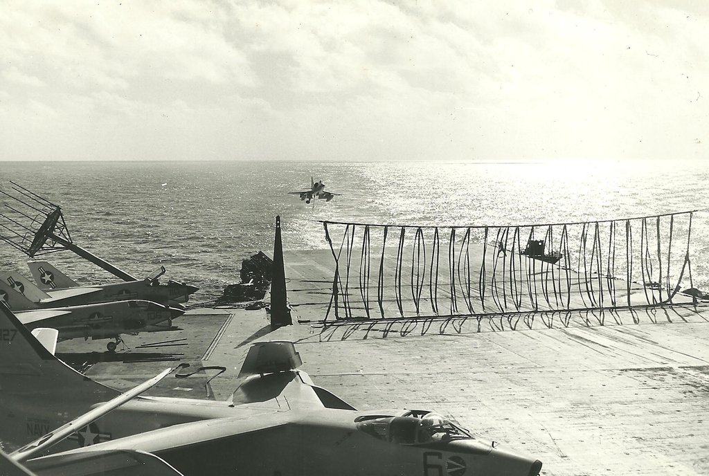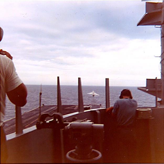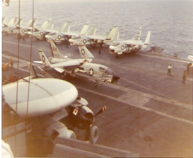 38k | VF-162 "Hunters" F-8J Crusader shuttling to cat. |