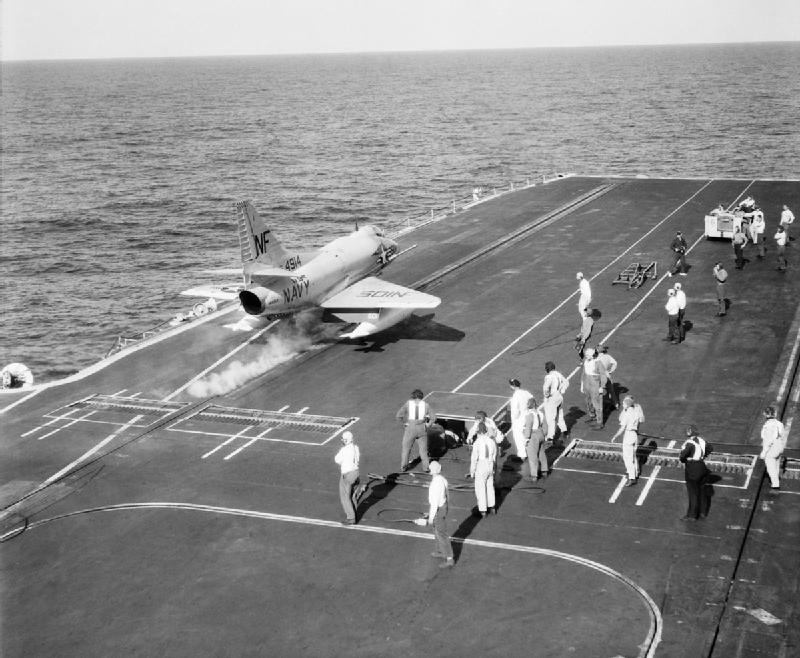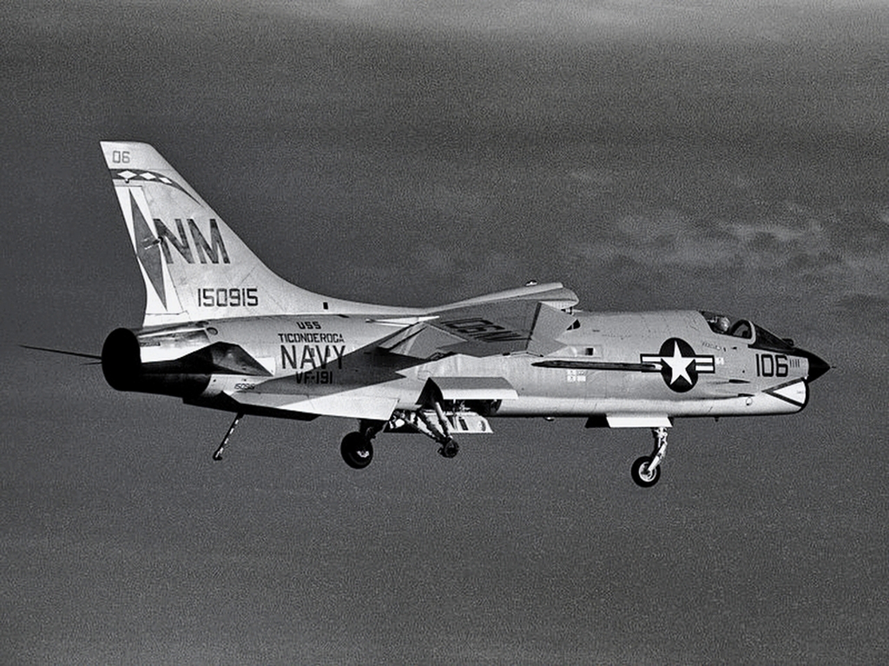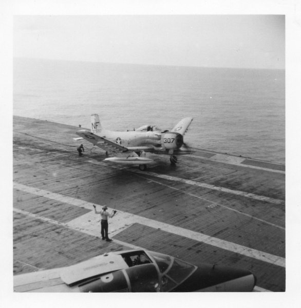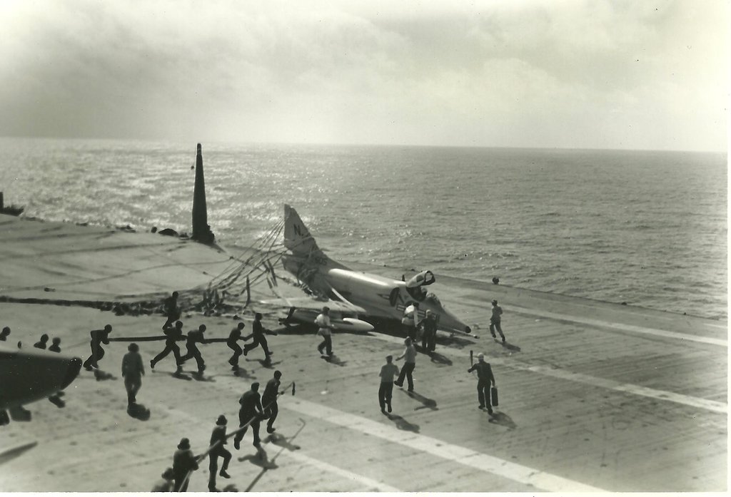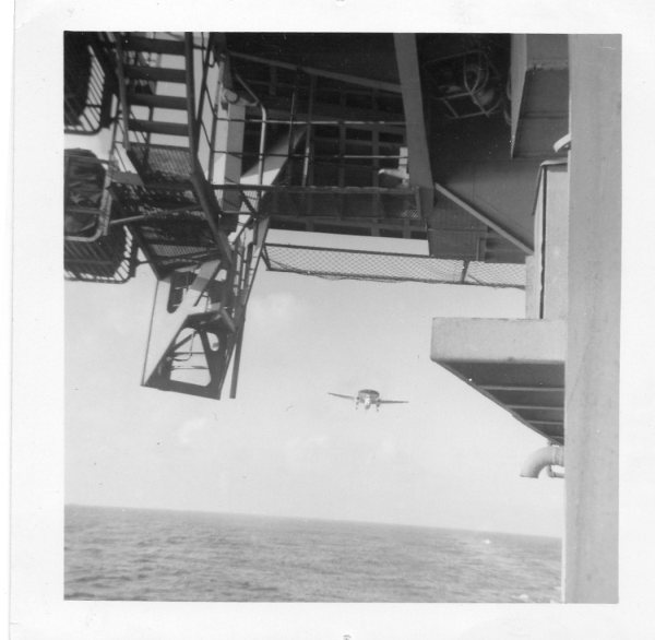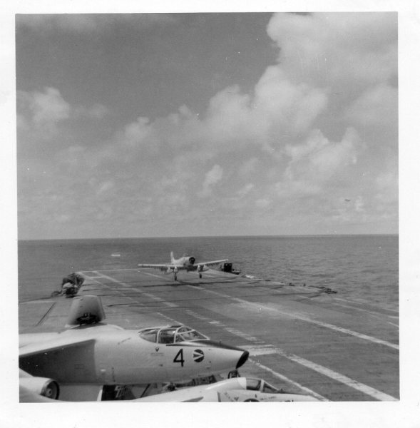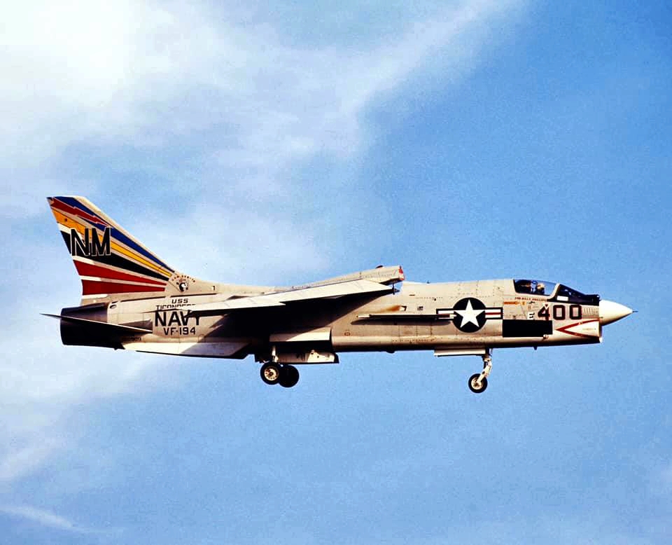 38k | VF-162 "Hunters" F-8J Crusader shuttling to cat. |