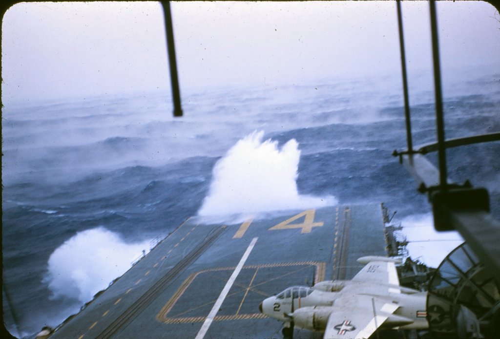 954k | How not to launch an aircraft in heavy seas: an S-2E Tracker is launched from USS Ticonderoga (CVS-14). As Brian Wolfe and Gil Sharp recall, this happened circa April-May 1971, en route from the Philippine Islands to Japan. Roger Ozbolt comments: "I remember when it happened, it was our Lieutenant V-2 division officer who was the pilot, the plane was making a mail run. He said after the plane went through the wave it stammered and sputtered for a few seconds then smoothed out, he said they had about 4" of water in the cockpit. [...] it's a wonder that it didn't go down." Format: WMV (Windows Media Audio/Video file) (silent) Duration: 15" Size: 320 x 240 |