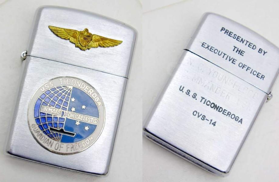 68k | This is a "CVS-14 lighter I am trying to get back to the owner or his family members. Being a Navy Vet, I bought on a Goodwill Auction for collectable reasons, but feel that this heirloom should be back in the hands of the family because it's just the right thing to do." "Any help would be fantastic. Not sure if it's coming from Executive Officer N.C. Youngblood or being presented to him." If you can help, please let us know. Thank you very much. |