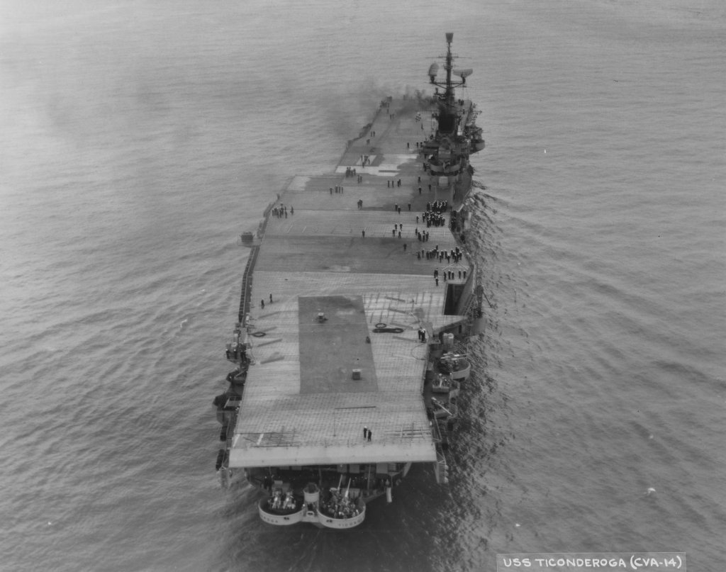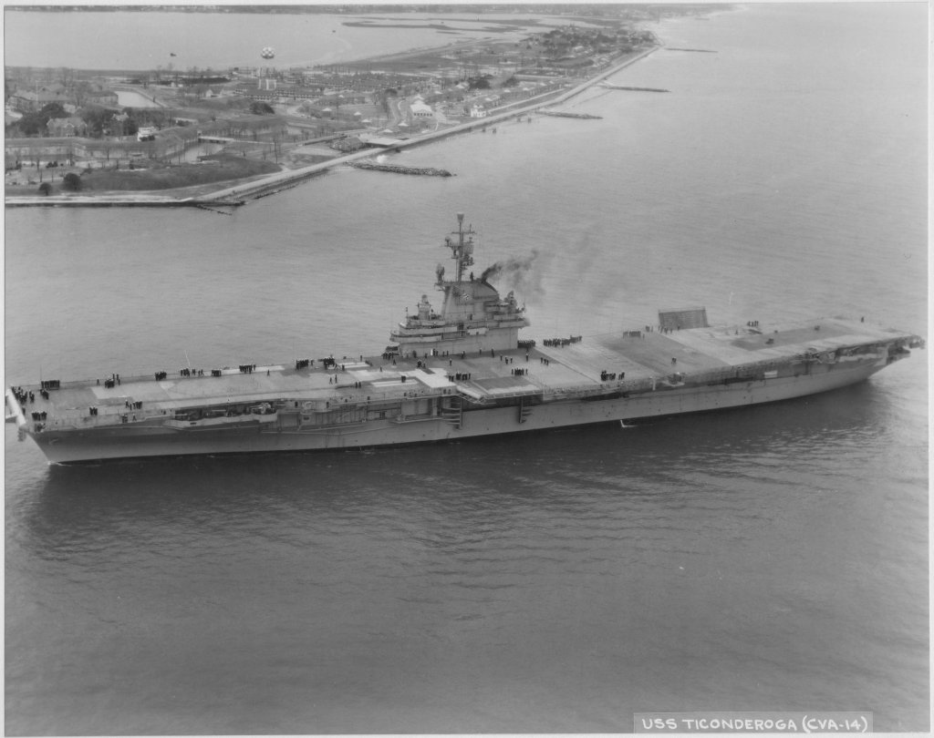 36k | USS Ticonderoga (CVS-14) late in her career, off NAS North Island, San Diego, California. |