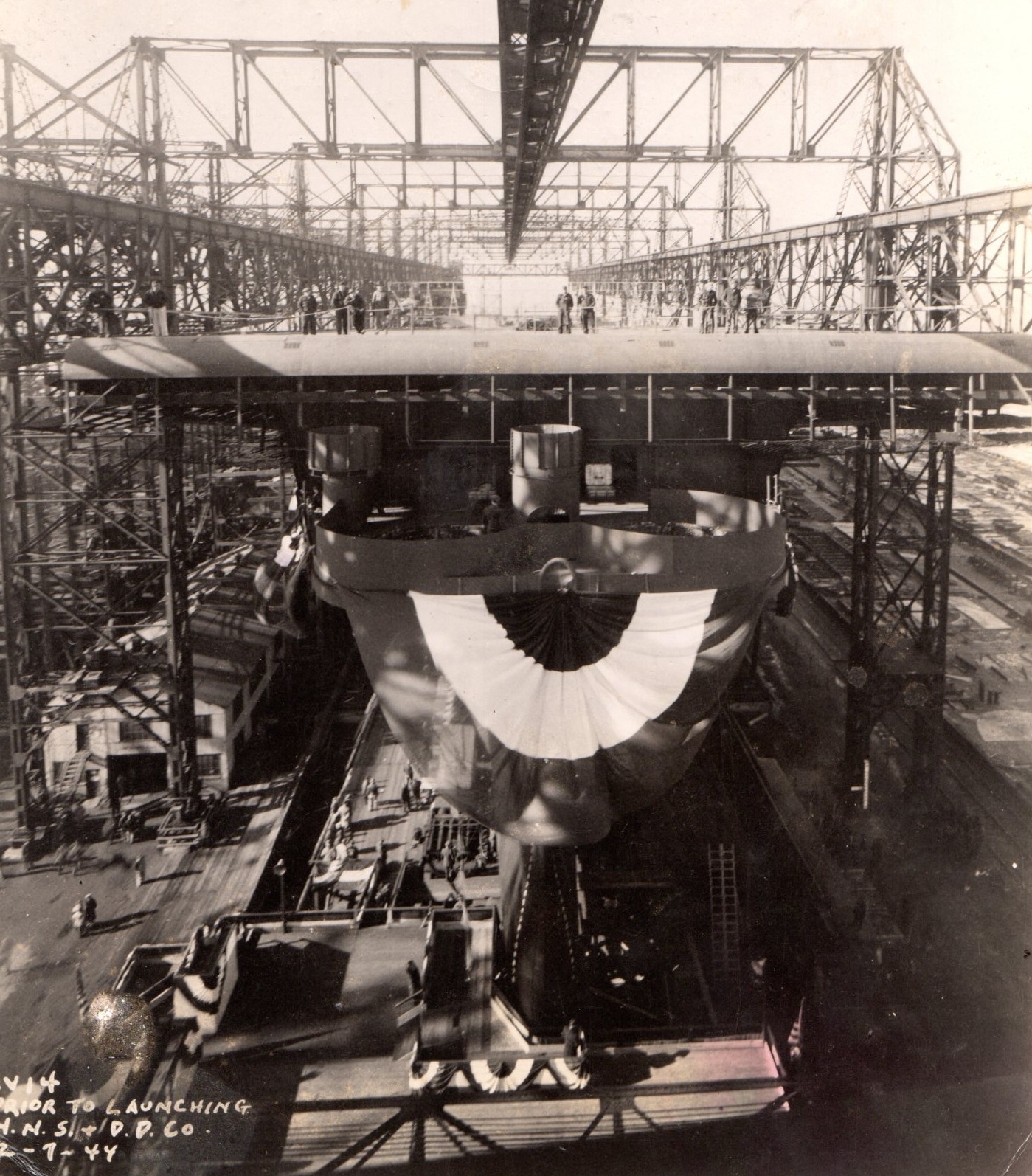 667k | Photo of Ticonderoga (CV-14) taken a few days before her launching. |