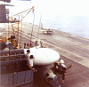 564k | "TIP062207-6/22-USS TICONDEROGA: The Skylab command module is hauled aboard recovery ship USS Ticonderoga [22 June 1973] following recovery in the Pacific 834 miles southwest of San Diego, Calif. The Skylab astronauts, inside the command module, set a record 28 days in orbit aboard Skylab. UPI-AP" |