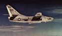 86k | VA-87 "Golden Warriors" A-7B Corsair II launching from USS Ticonderoga (CVA-14) during combat operations, Gulf of Tonkin, 1969. |