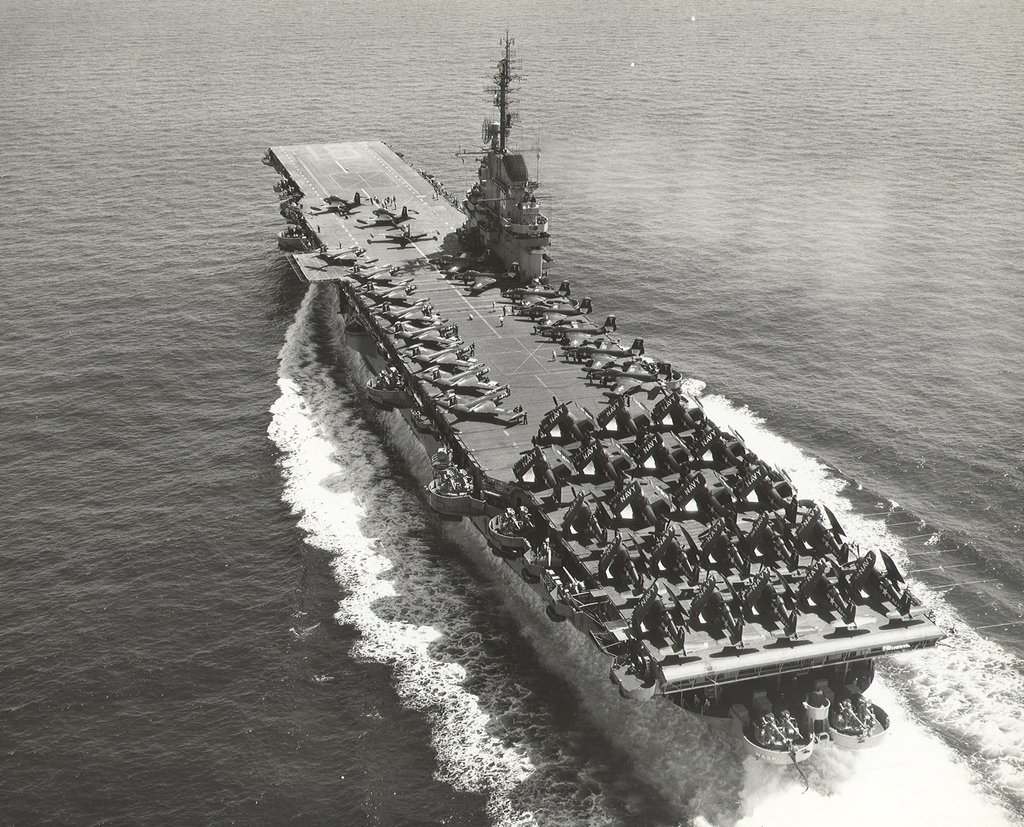 104k | USS Wasp (CV-18) with Carrier Air Group (CVG) 1, 9 July 1952. Photo by Marius Bar, Toulon, France. |