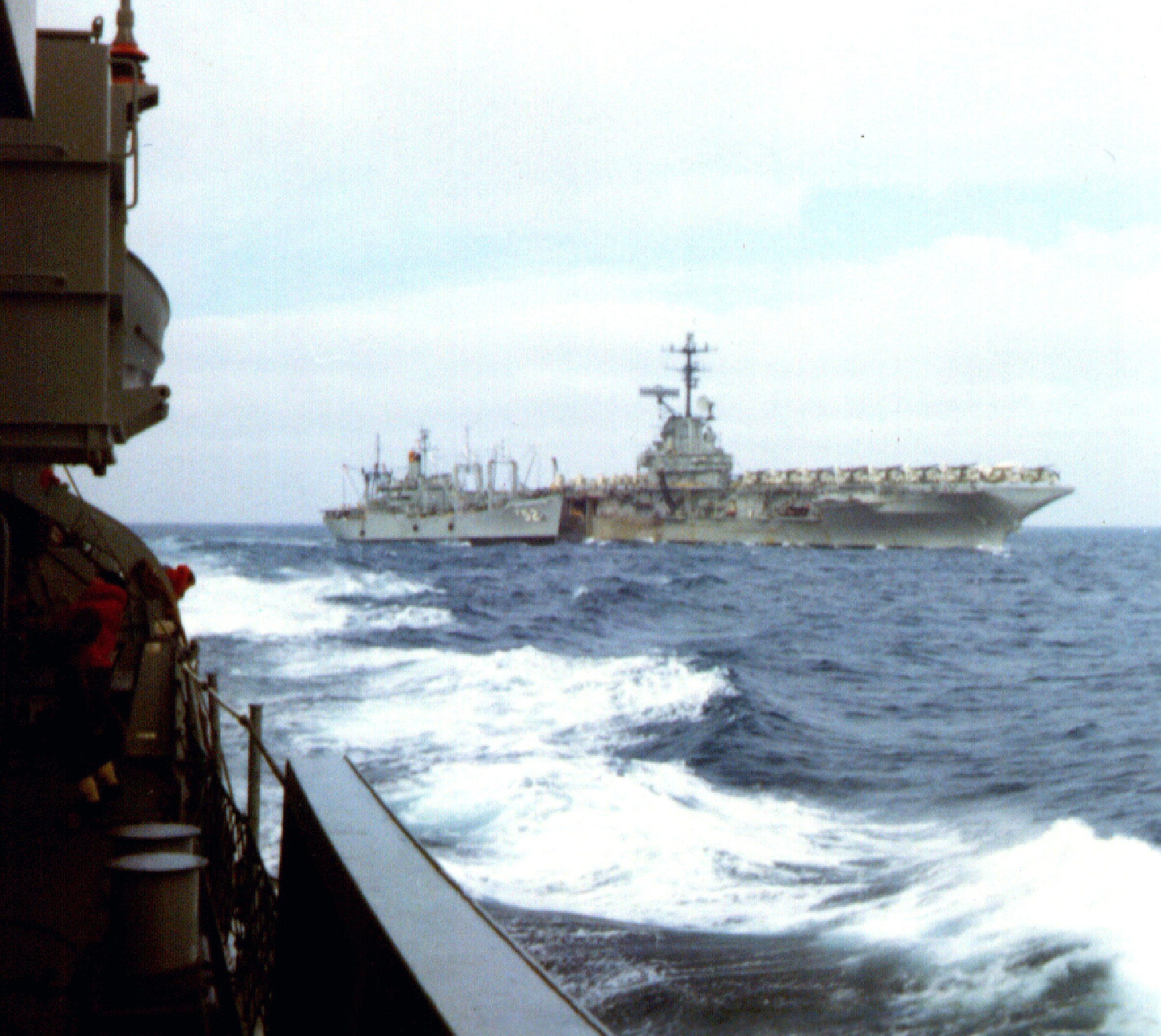 713k | USS Wasp (CVS-18) during underway replenishment with USS Arcturus (AF-52) in the Atlantic, spring-summer 1970, as seen from USS Garcia (DE-1040). | © Steve Singlar, ETCS, USNR-ret. | ||||||||||||||||||||||||||||||||||||||||||||||||||||
