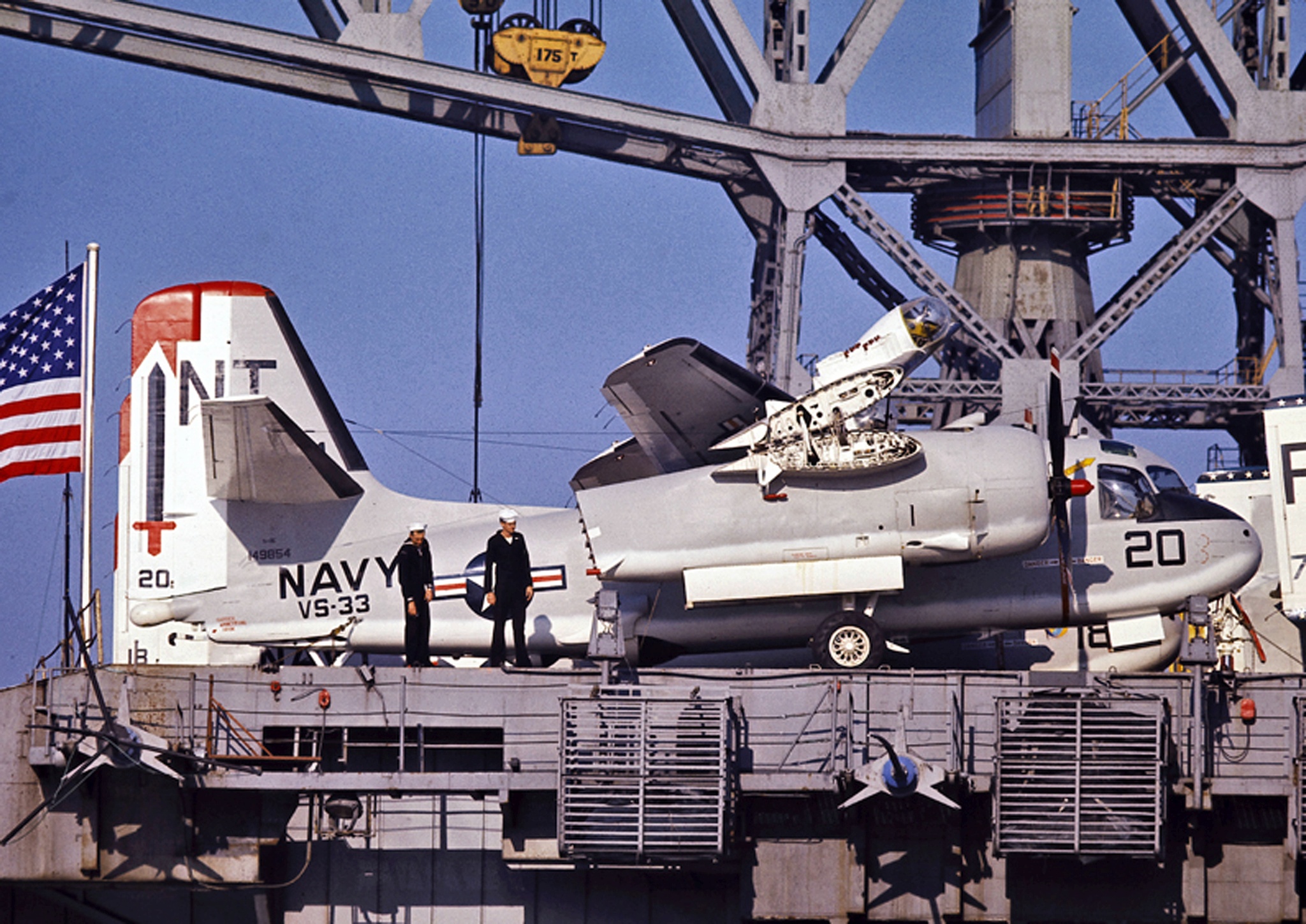878k | Grumman S-2E Tracker, Antisubmarine Squadron (VS) 33 "Screwbirds," Antisubmarine Carrier Air Group (CVSG) 59, USS Bennington (CVS-20), Yokosuka, Japan, 26–27 October 1968. BuNo 149854, modex NT20. |