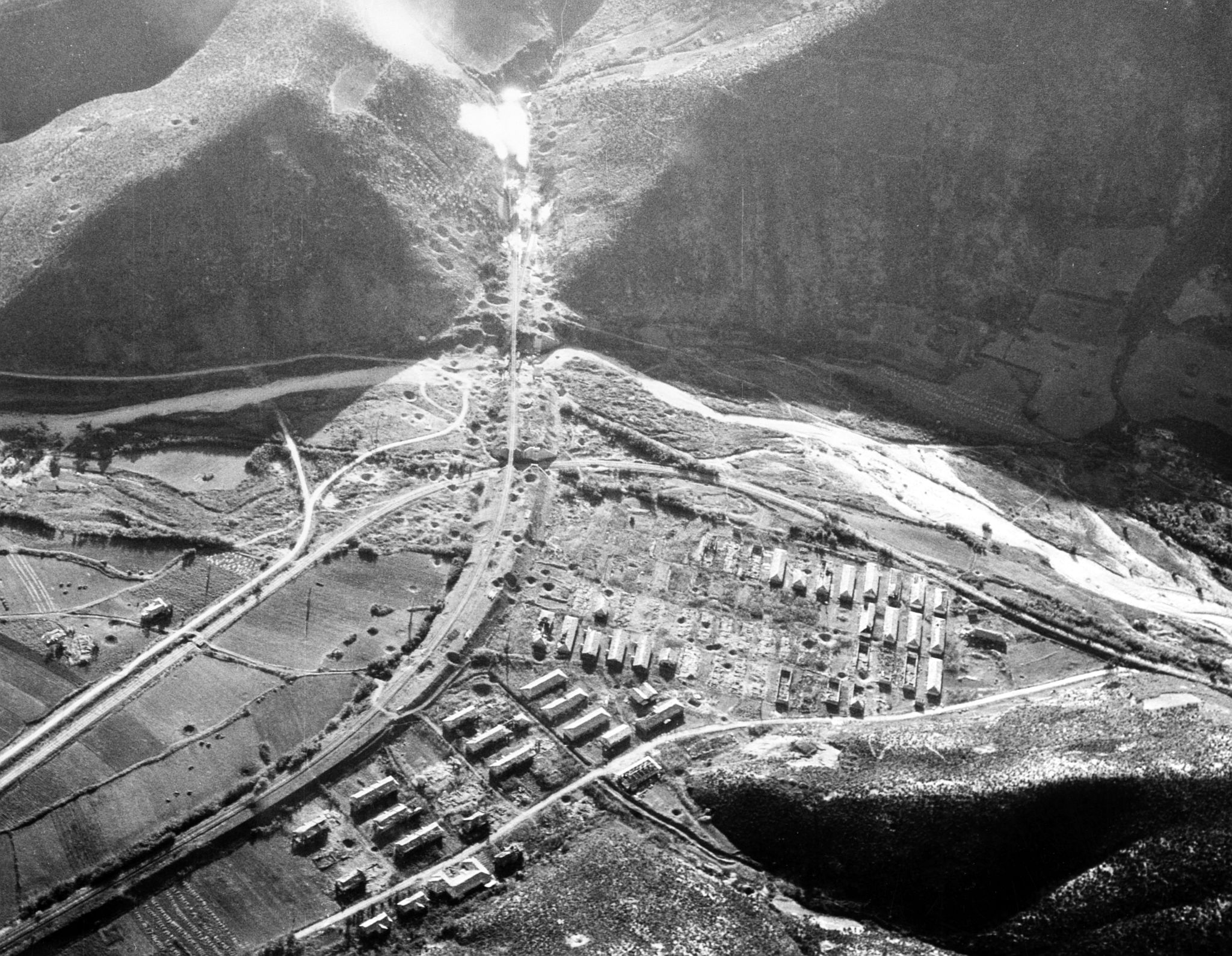 21k | Bombing run by an A-4F assigned to VA-22 "Fighting Redcocks." Pilot was CAPT Albert A. "Shoes" Schaufelberger, Jr., Air Wing FIVE CAG. Photo by VA-22 pilot LT William E. Bradford. (Thanks to CDR William E. Bradford, USNR, Retired.) |