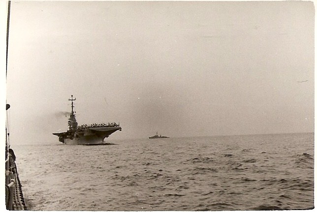 92k | Left to right: USS Frank E. Evans (DD-754); an unidentified auxiliary, possibly USS Castor (AKS-1); and USS Kearsarge (CVS-33). Circa 1964–68. |