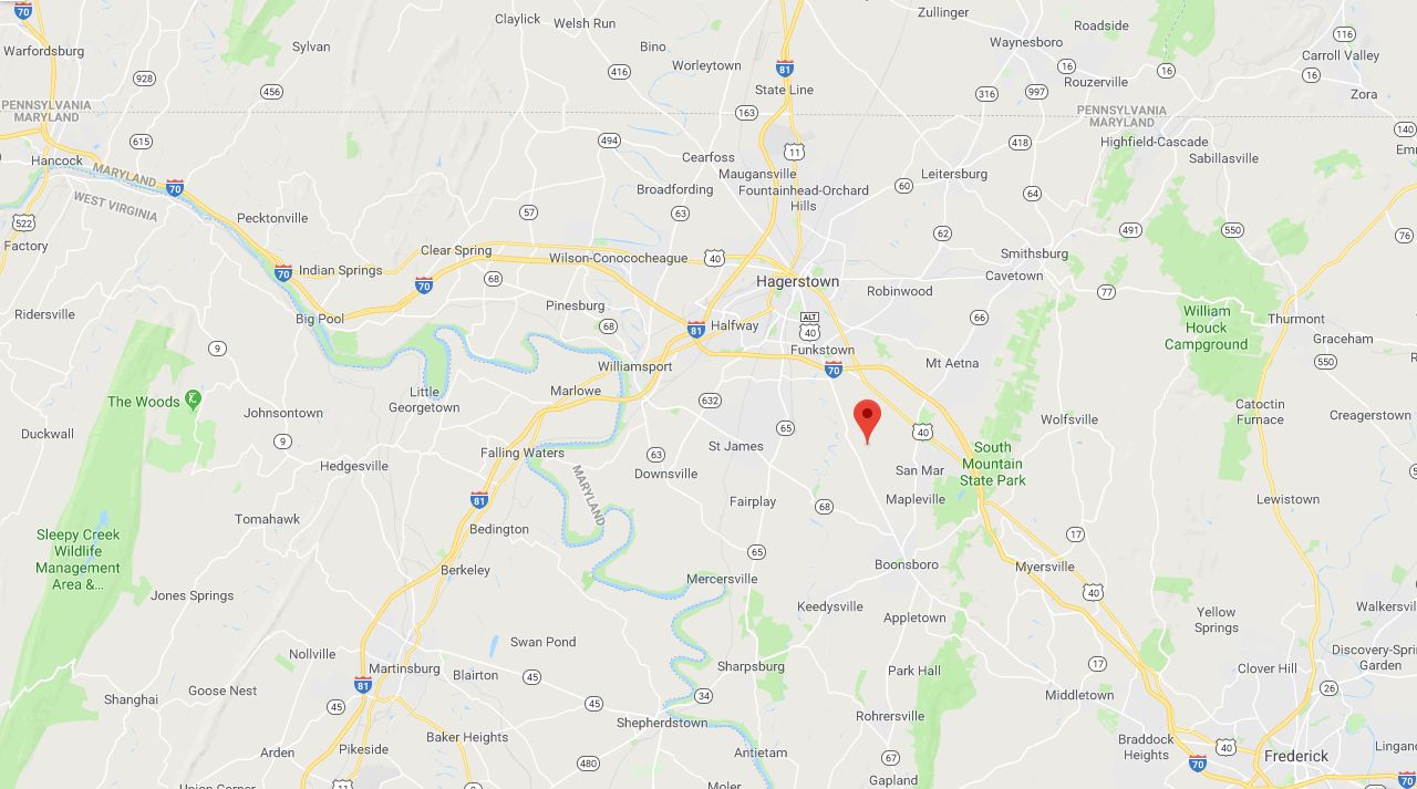 NS023636a: Antietam. Map courtesy of Google Maps. NS023636: Battle of Antietam, the charge of Iron Brigade near the Dunker Church, on the morning of 17 September 1862. Painting by Thure de Thulstrup (1846–1930). Chromolithograph published in 1887 by Louis Prang and Company. Source: website of the Old Print Shop, New York City. |