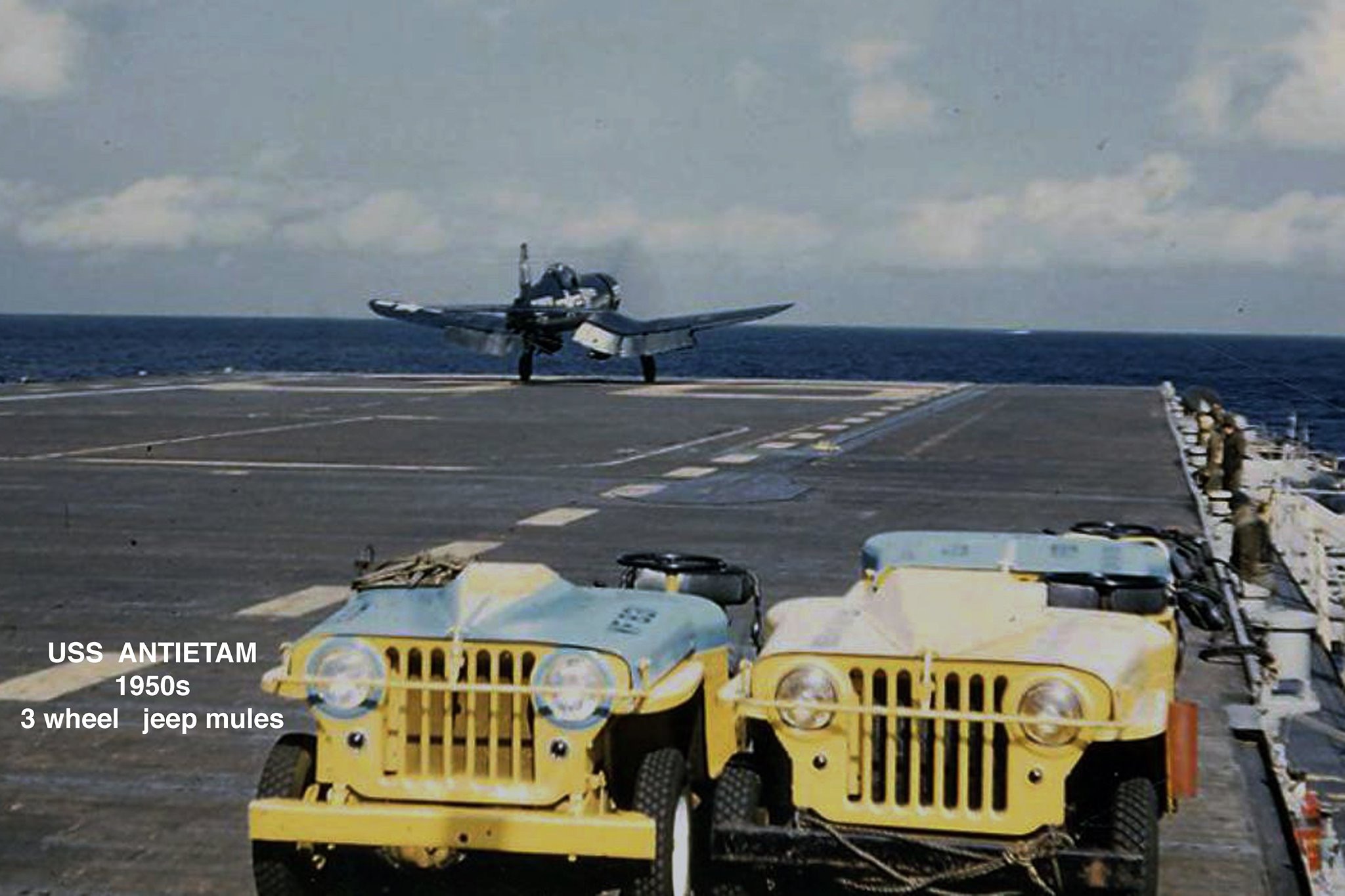 359k | A Corsair launching from USS Antietam sometime in the 1950s. |