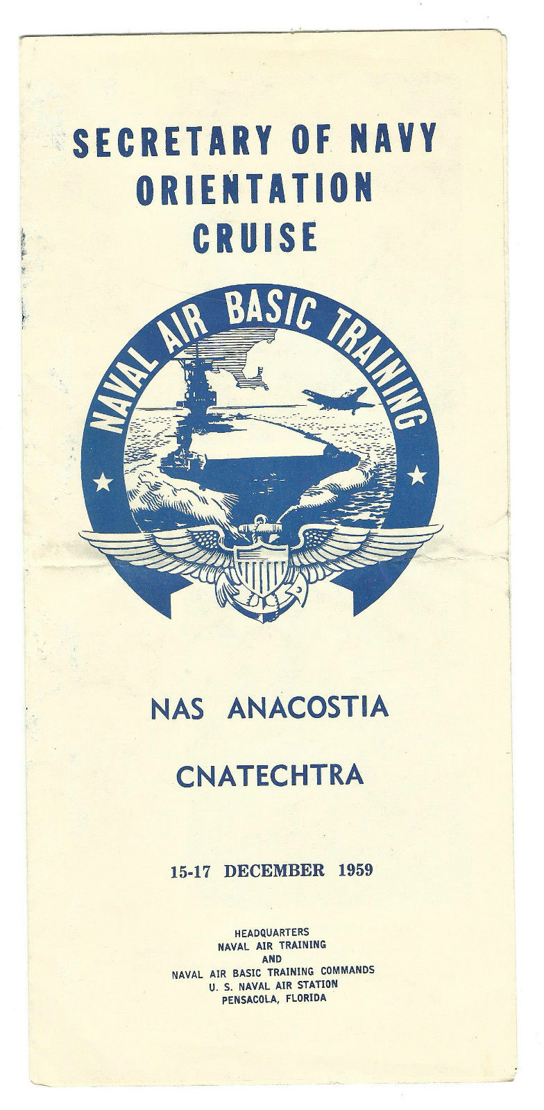 66k | "Secretary of Navy Orientation Cruise, Naval Air Basic Training, NAS Anacostia, CNATECHTRA, 15–17 December 1959, Headquarters, Naval Air Training and Naval Air Basic Training Commands, U.S. Naval Air Station, Pensacola, Florida" USS Antietam (CVS-36). The photo was taken circa 1953 (when Antietam's hull number was CVA-36). |