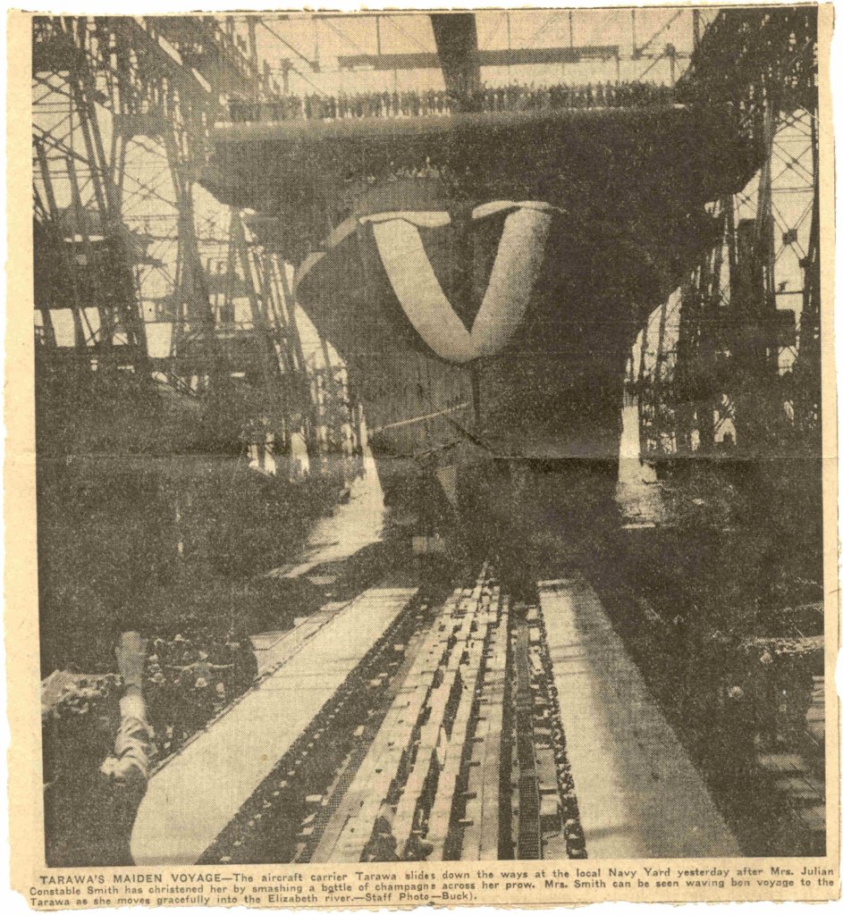 | Local Newspaper Articles About the Launching of USS Tarawa |
