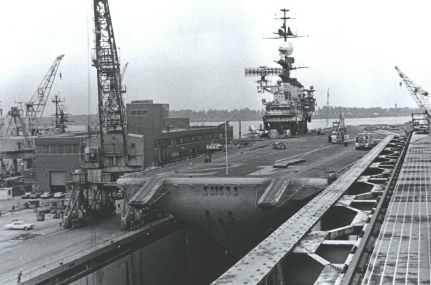84k | CVB-42, still named Coral Sea, under construction, New York Navy Yard. |