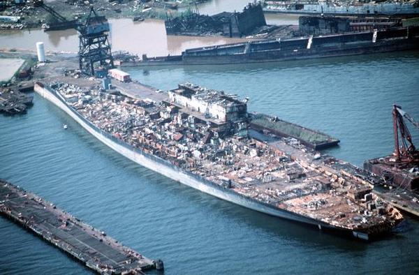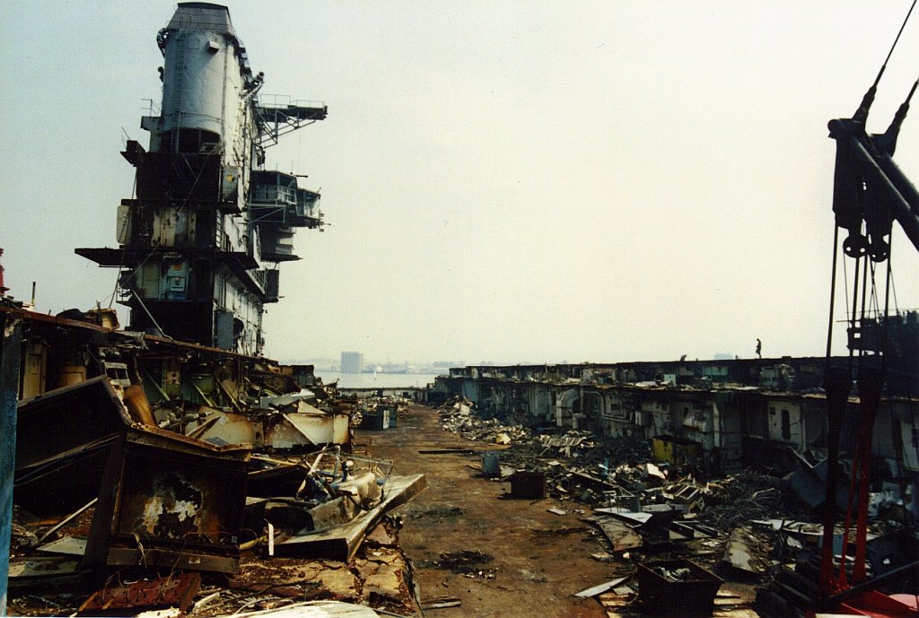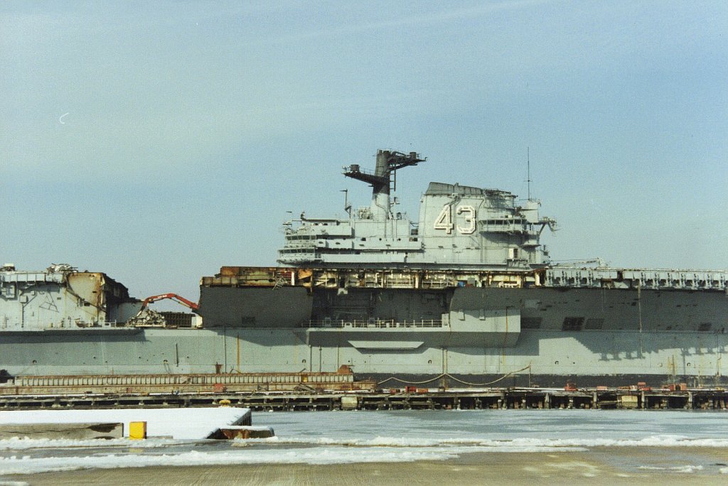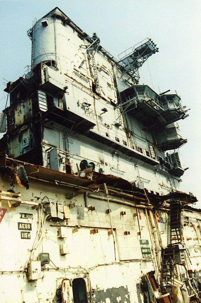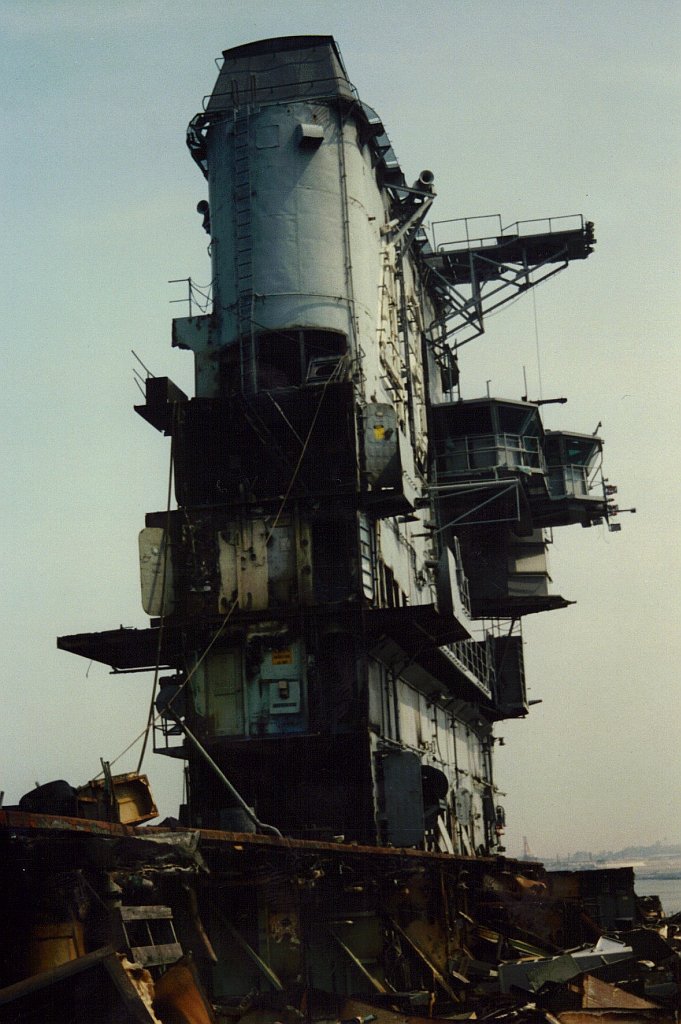 151k | December 2, 1994 — The entire island and stack structures were gone; the flight deck aft of the forward hangar bulkhead had been removed, along with most of the hangar walls. Scrap operations had not proceeded below the hangar deck level. |