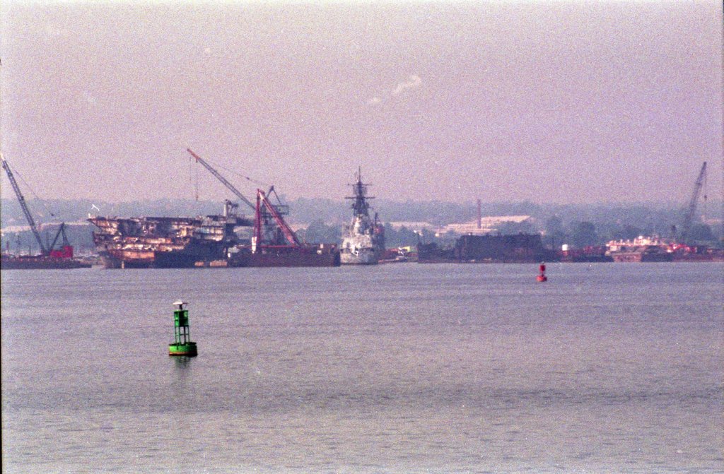 169k | "These photos were taken on a boat ride from Baltimore to Annapolis, MD back in 1994. We were on our way out of Baltimore when I took these shots. As well an unknown destroyer[—either ex-Davis (DD-937) or ex-Manley (DD-940)—]next to the carrier." Photos by Cody Z. Shaffer. |