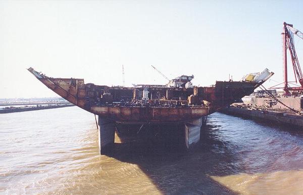 193k | July 13, 1994 — The island structure had already been removed; the stack came down three days later. At this time, debris was everywhere. |