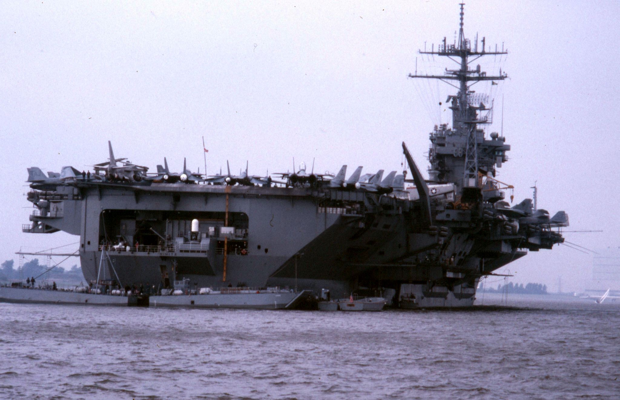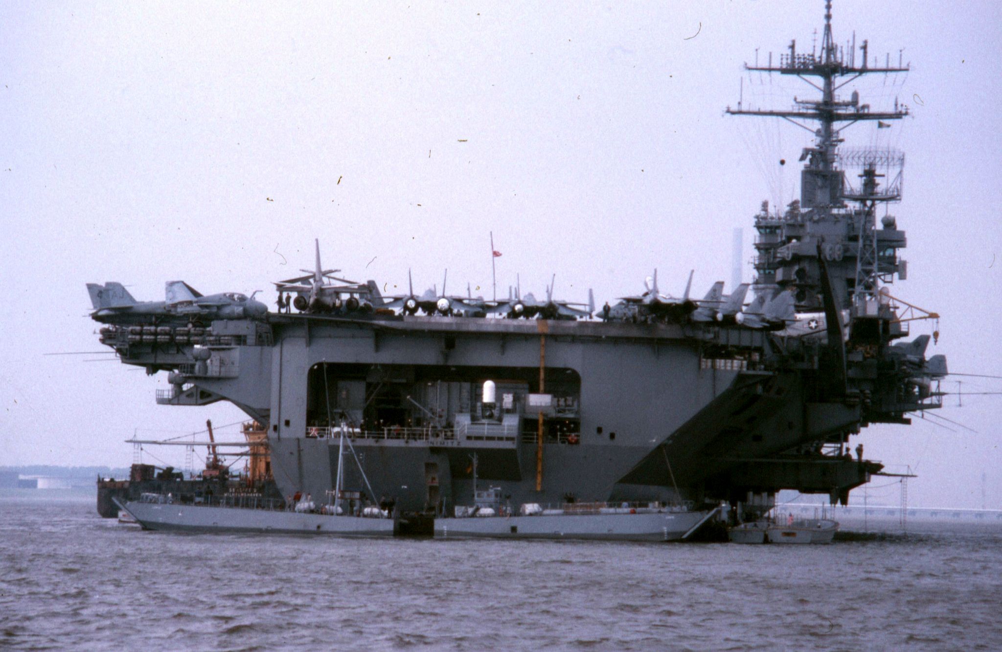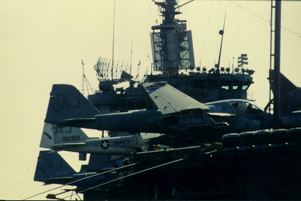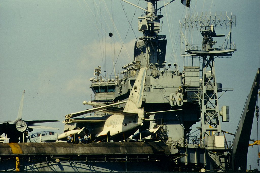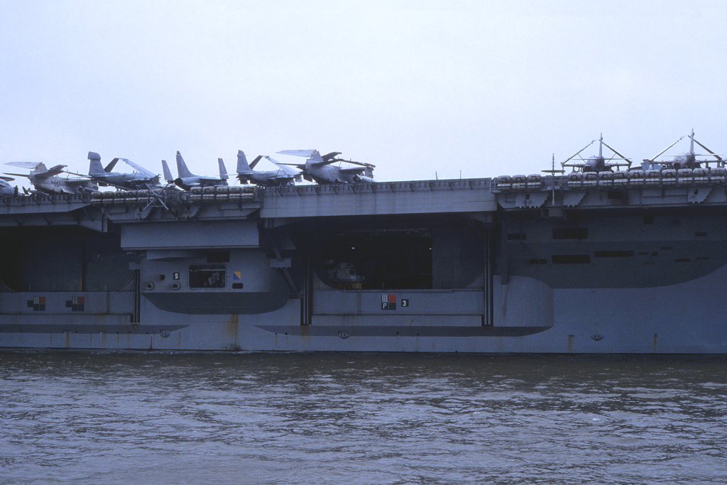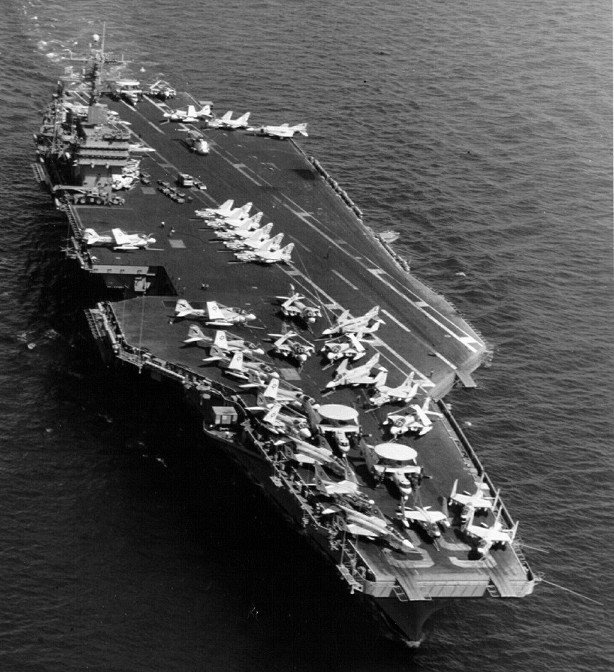 125k | Good overhead image, showing the overall details of the Nimitz-class. Picture taken sometime in 1975-1977, with Carrier Air Wing Eight (CVW-8) aboard. | USN | |||||