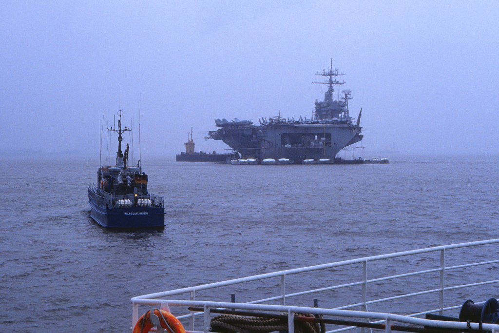 87k | USS Nimitz (CVN-68) underway, date (possibly first half of the 1990s) and location unknown. |