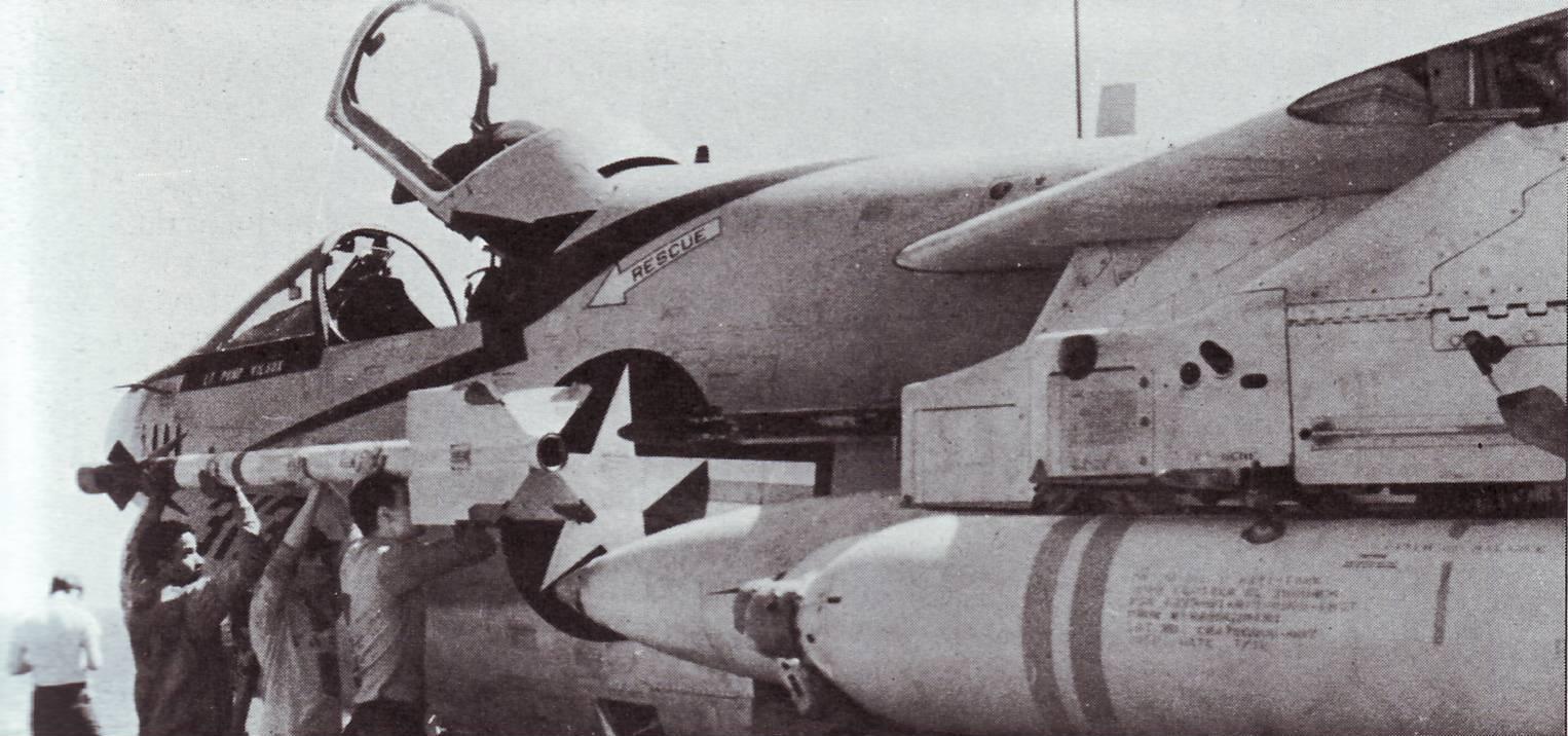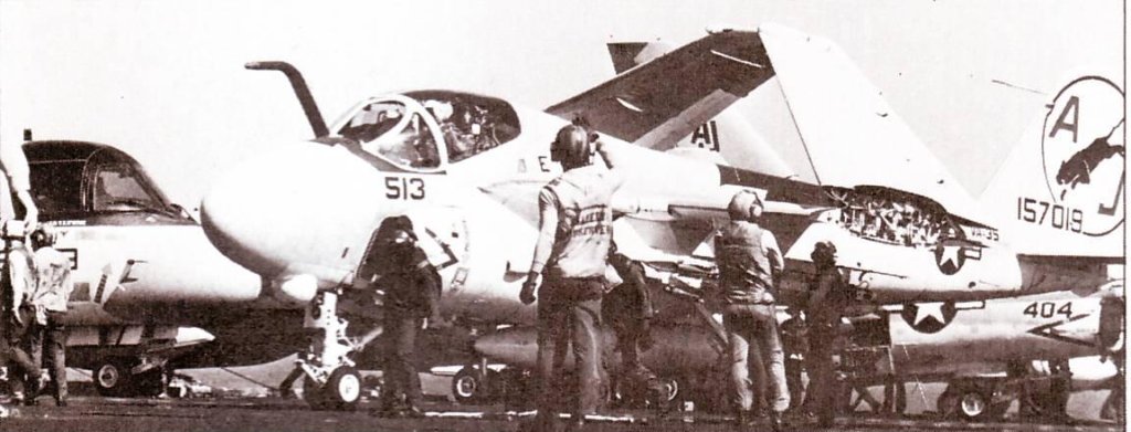 98k | Undated pic (probably 1975–83) of an A-6 Intruder about to be launched from USS Nimitz's starboard catapult. Photo USN. |