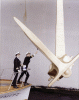 915k | Aerographer's Mate 3rd Class Michael Slaathaue operates a hand-held anemometer to determine wind velocity and direction aboard USS Nimitz (CVN-68), 20 October 1997. The nuclear-powered aircraft carrier and her embarked Carrier Air Wing (CVW) 9 were deployed in the Persian Gulf to enforce UN sanctions against Iraq by patrolling the "no-fly zone" under Operation Southern Watch. U.S. Navy photo by PHAN Glenn E. Cook (# 971020-N-1386C-221). |